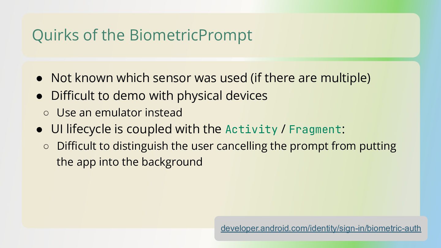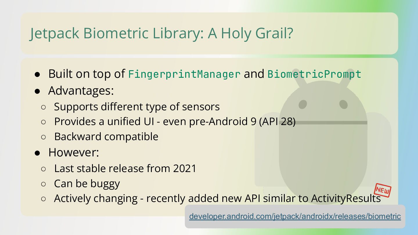 Do you need to protect some functionality or store sensitive data in your Android app? Biometric authentication seems both convenient and secure at face value. However under the skin of standardized APIs like androidx.biometric lies a web of strange edge cases and security vulnerabilities caused by API misuse in many cases.