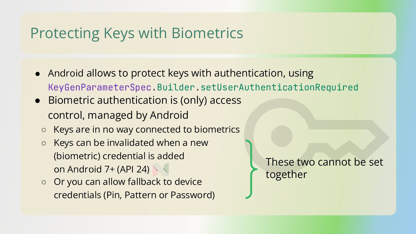 – Which are the obvious (and not so obvious) usability implications of making Android invalidate keys when new (biometric) credentials are added?