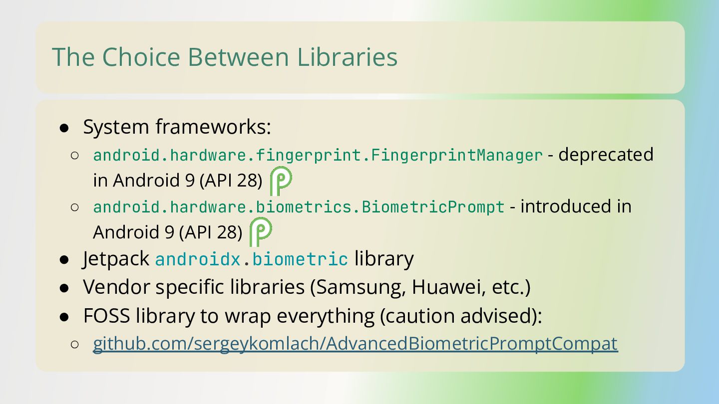 Based on extensive research and development of security-sensitive apps, we will discuss the quirks and features of Biometrics API and the Keystore system of Android. Among many others, you will learn: