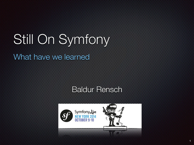 Last year I talked about how we moved a large ecommerce site from Zend to Symfony 2. We now also run NordstromRack.com on this platform. This year I am going to follow up by touching on a wide variety of subjects related to enterprise applications: Yes, we are still using Symfony. Yes, we still love it. Since we have moved almost all of the code into Symfony, our concerns have shifted: We are now a lot more focused on monitoring and logging (Sentry, StatsD). What's on our dashboard, and what have we learned about performance. I want to touch on how we are moving this large monolithic application towards a Service Oriented Architecture and what we are experimenting with to support such an architecture: Containers (Docker), Service Discovery (Consul), Orchestration etc. How do we ensure our application is as testable as possible (PHPUnit, Behat, our complex build pipeline in Travis CI). Why we are using multiple Kernels and how do we handle configuration with so many bundles.