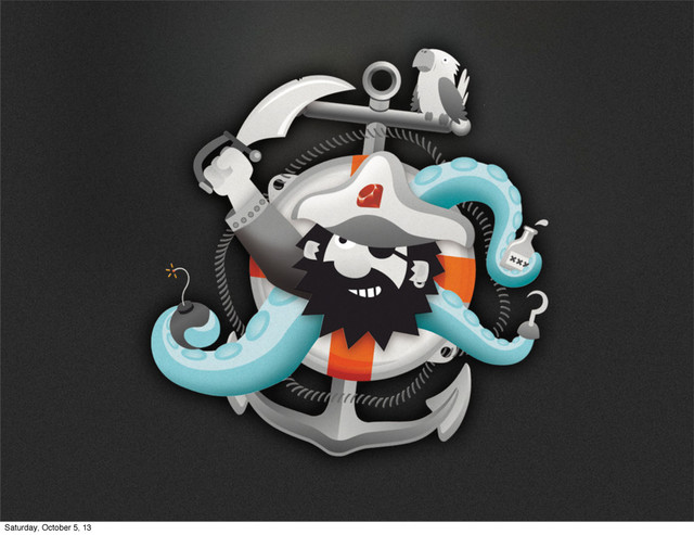 and/or complexity • Sprinkling jQuery selectors only goes that far • Gives structure to your code • Let someone else do the hard stuff Saturday, October 5, 13