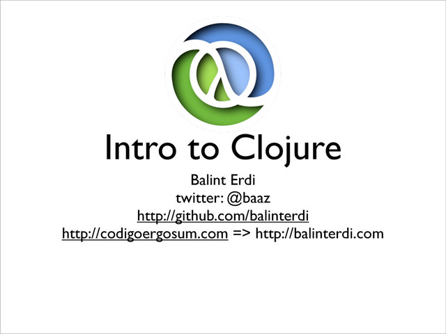 \b, \c) • String (“foo”) • Symbol (‘a, ‘b, ‘c) • Keywords • for very fast equality test (:cool, :bad) • Regex (#”clo[s|j]ure”) • Boolean (true, false) • Only nil and false are falsey