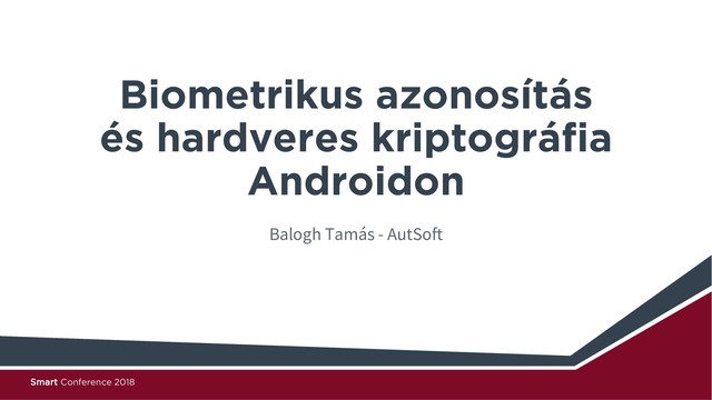 Optikai - Könnyen átverhető, de átlát a kijelzőn Kapacitív – 2D Kapacitás mátrix, olcsó, elterjedt Ultrahang alapú – Kijelzőbe épített olvasók pl. Vivo Termikus – hőtérkép alapú – okostelefonokban nem alkalmazzák Minucia felismerés Barázdák elágazása, végződése - mintafelismerés Smart Conference 2018 5