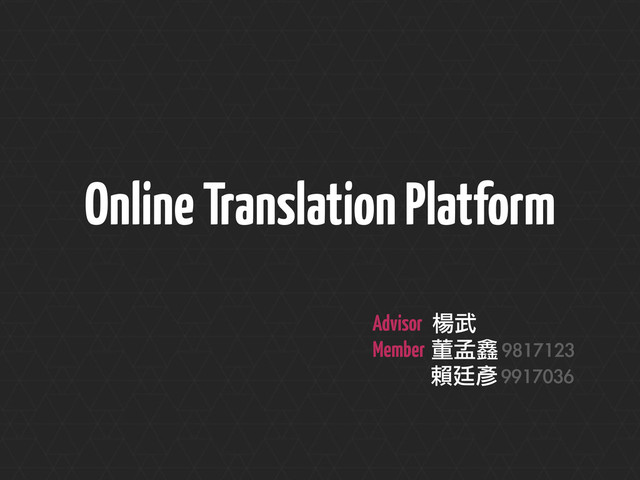 Online Translation Platform Advisor 楊武 Member 董孟鑫 9817123 賴廷彥 9917036