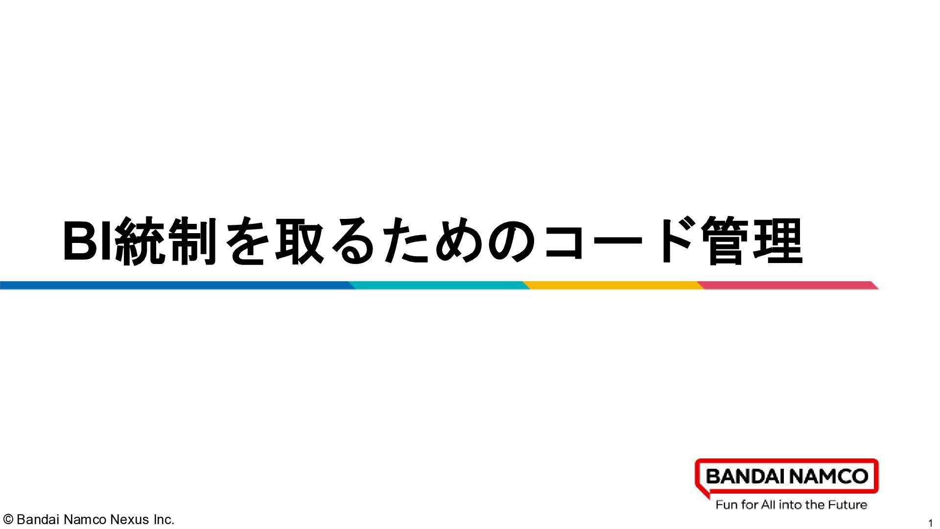 © Bandai Namco Nexus Inc. 1 BI統制を取るためのコード管理