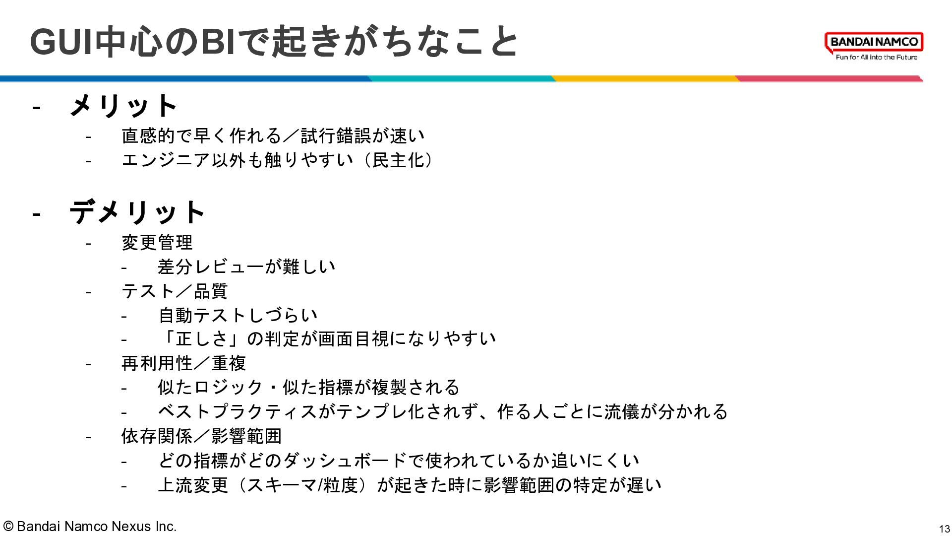© Bandai Namco Nexus Inc. GUI中心のBIで起きがちなこと 13 - メリット -