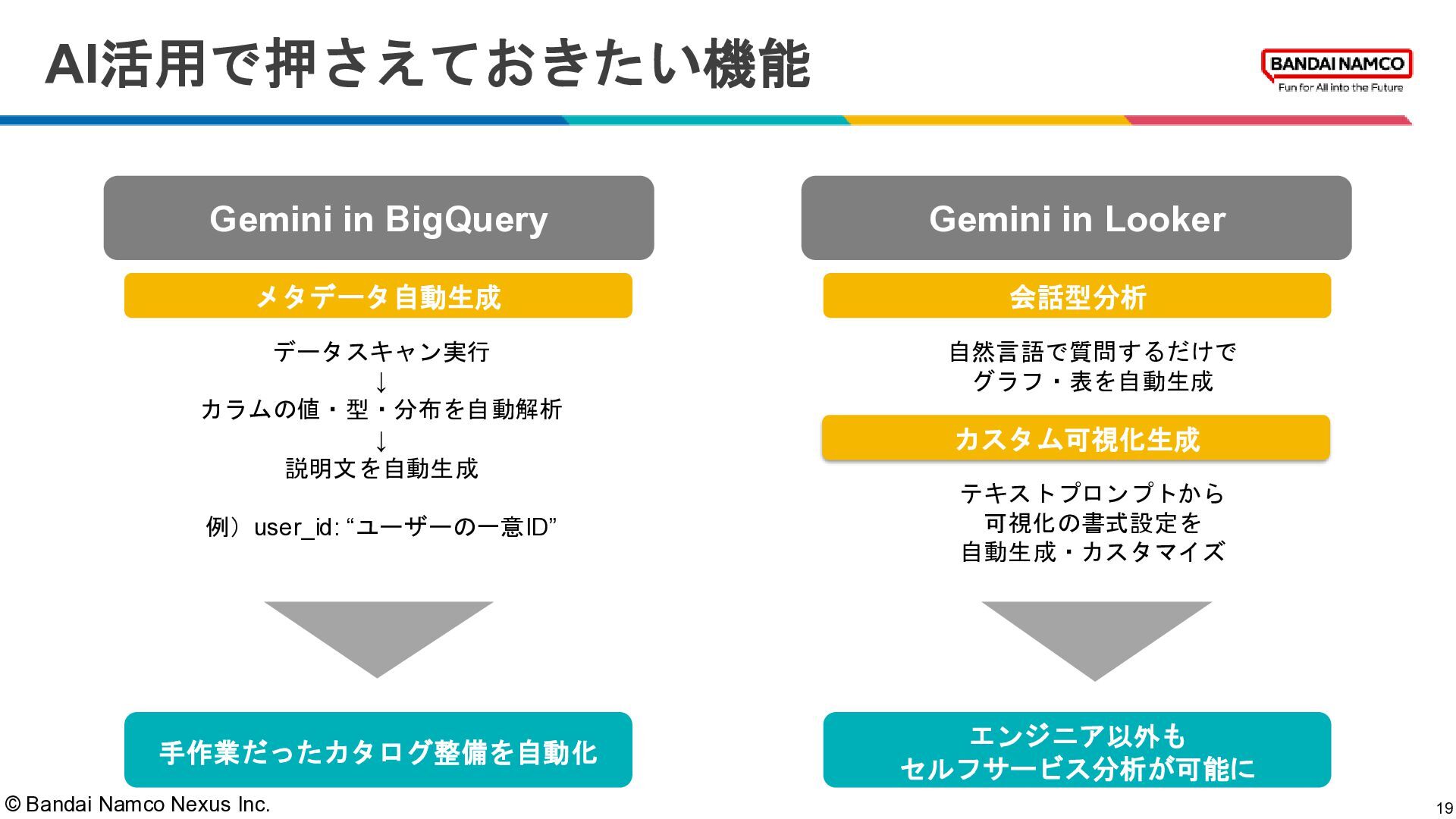 © Bandai Namco Nexus Inc. AI活用で押さえておきたい機能 19 Gemini in BigQuery