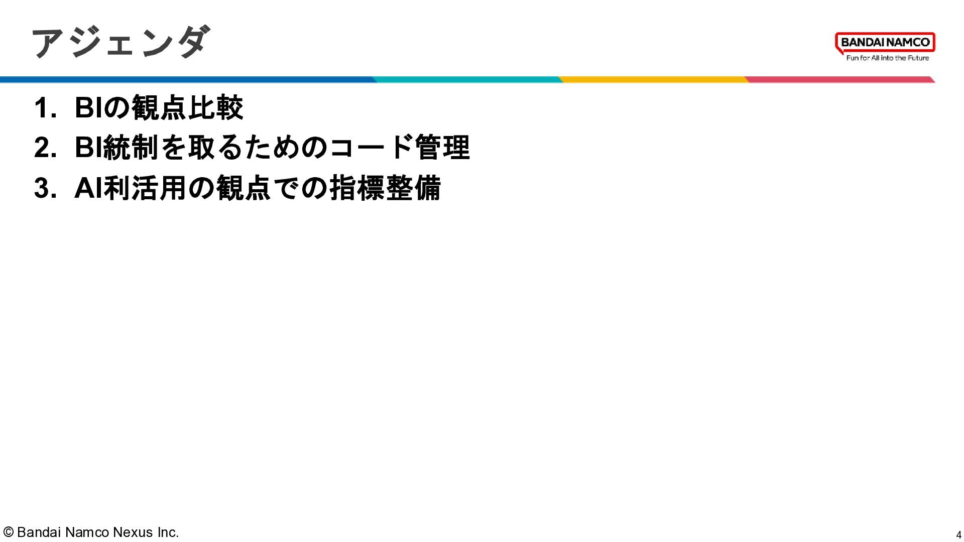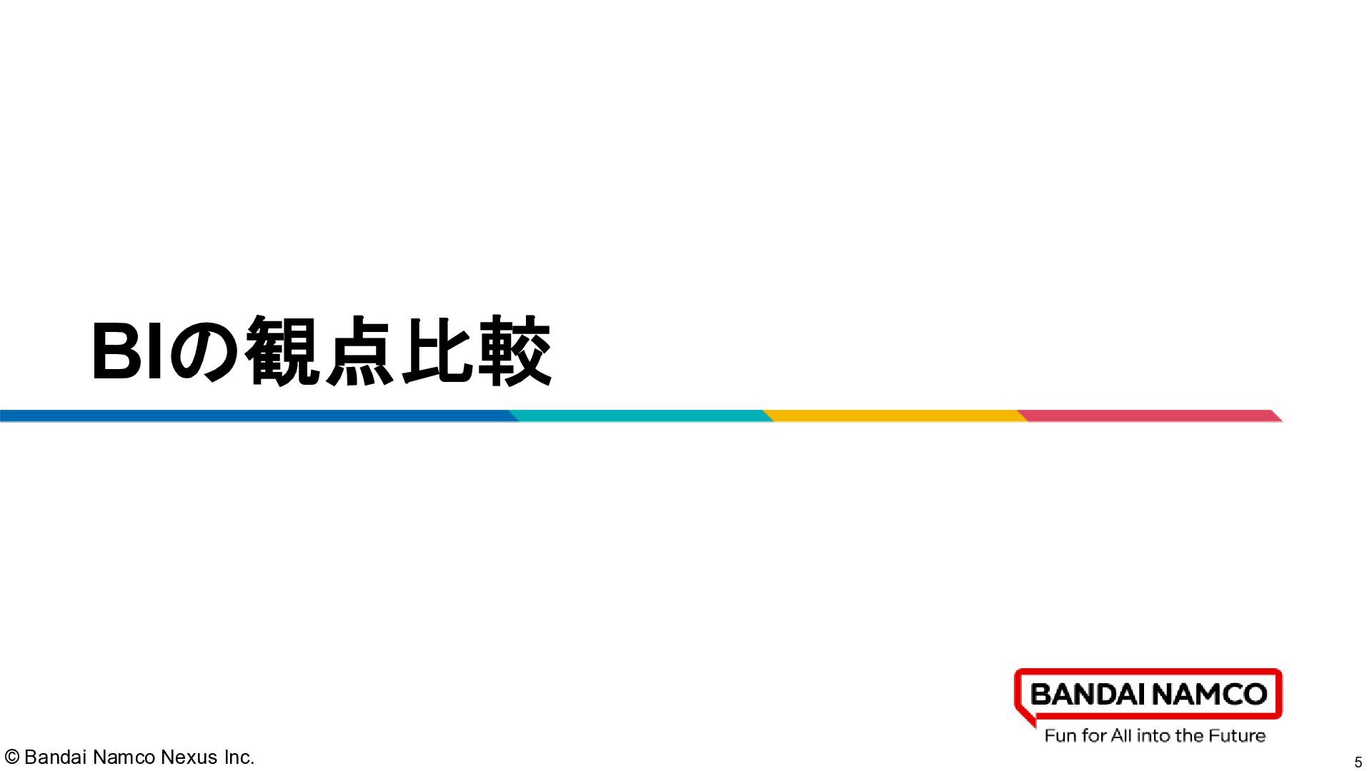 © Bandai Namco Nexus Inc. 4 アジェンダ 1. BIの観点比較 2.