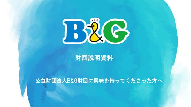 財団説明資料 公益財団法人B&G財団に興味を持ってくださった方へ