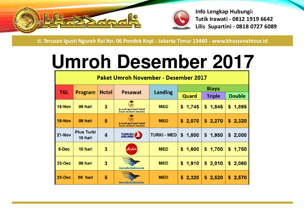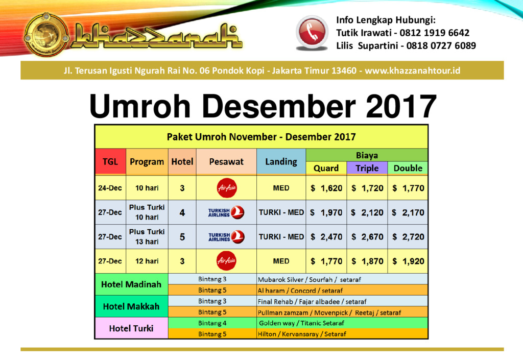 Paket Umroh Desember Akan menjadi Program umroh Akhir Tahun yang sangat ditunggu dengan harga yang terjangkau, segera daftarkan diri anda sekarang juga.