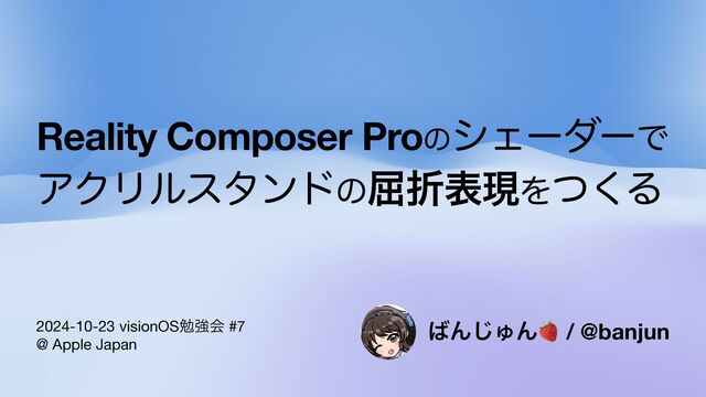 2024-10-23 visionOS勉強会 #7 at Apple Japan https://lu.ma/ev7prjd9 https://scrapbox.io/visionOS/Reality_Composer_Proのシェーダーでアクリルスタンドの屈折表現をつくる