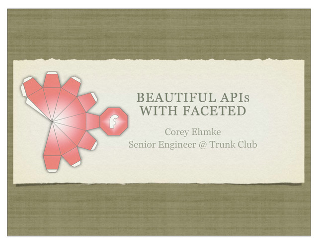 One way to approach refactoring a monolithic application is dividing it up into a series of smaller applications that organize the work of the system through internal APIs. Faceted is a new Ruby gem that makes it easy to build these APIs using a flexible, declarative, and opinionated set of modules. In this presentation you will be introduced to Faceted, see examples of how to use it, and get a glimpse of the guiding philosophy behind the API-driven refactoring philosophy.