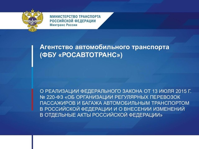 О реализации Федерального закона 220-ФЗ «Об организации регулярных перевозок пассажиров и багажа автомобильным транспортом в Российской Федерации и о внесении изменений в отдельные акты Российской Федерации»