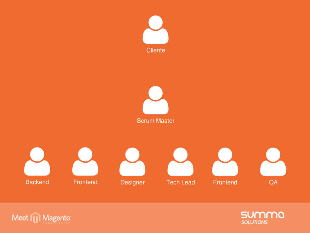 Cliente Scrum Master Tech Lead QA Frontend Designer Frontend Backend