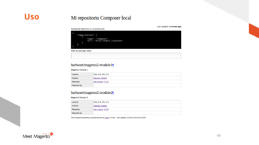 { "name": "Mi repositorio Composer local", "homepage": "http://satis.localhost", "repositories": [],
