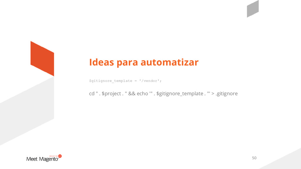 50 Ideas para automatizar $gitignore_template = '/vendor'; cd " .