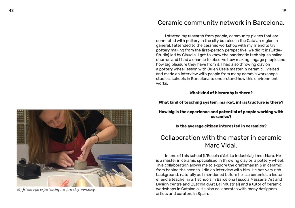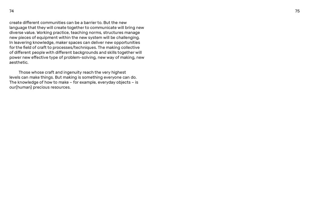 a term that is a combination of anthropology, the study of culture, and archaeology, a study of past civilizations. It is interesting how making things shape our society today, all the way to the past. What I find the most interesting is how it is going to shape it in the future. Can an object show us where it comes from? Can it describe unique elements of culture and human knowledge? Nowadays, at the beginning of the 21st century in the informa- tion society, our profession profiles are changing. The phenomenon of disappearing professions is more and more visible in our society. It seems like every day, another job is taken over by technology or if we look back in time, we can see many jobs that were replaced during the industrialisation time. Due to automation, a result of industrialisation, the role of humans has changed. The common thread to automation is that every routine, everything that can be modelled, framed, repeated and mapped, can be automated. Everything that machine likes about what we do can be automated. But all this means that human work will produce value when it’s not machine liked and that artisanal work can be expected to thrive. What if we can consider the third type value that which appears in the relation of the man and the machine. Today, craftsmanship is as relevant, if not more so, than ever. It is a way of thinking and doing where humanity is in tune with nature, not working against it. It leads to a world that’s built to last. We can all agree, it is something we need to move toward if we are to solve the challenging issues we are facing today—in our environment, in our jobs, and in our human-machine relations. For everybody else the values and principles of craftsmanship — autonomy, responsibility and creativity — are transforming work and management as we know it. In many ways, that’s what the future of work will be all about. Despite the fact that today’s craftsmanship is the 4th world’s largest economy, the professions associated with this sector are at the forefront of the disappearing professions list. Amongst oth 13 12