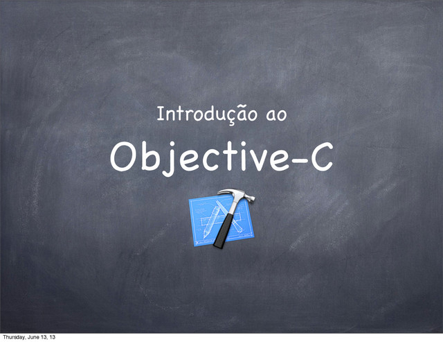 para nada id obj = nil; NSString *hello = nil; É como o “zero” para um tipo primitivo Pode ser testado num if if (obj) { ... } Pode enviar mensagens para nil (na maioria das vezes é ok) int i = [obj metodoQueRetornaUmInteiro] // se obj é nil, i = 0 Thursday, June 13, 13