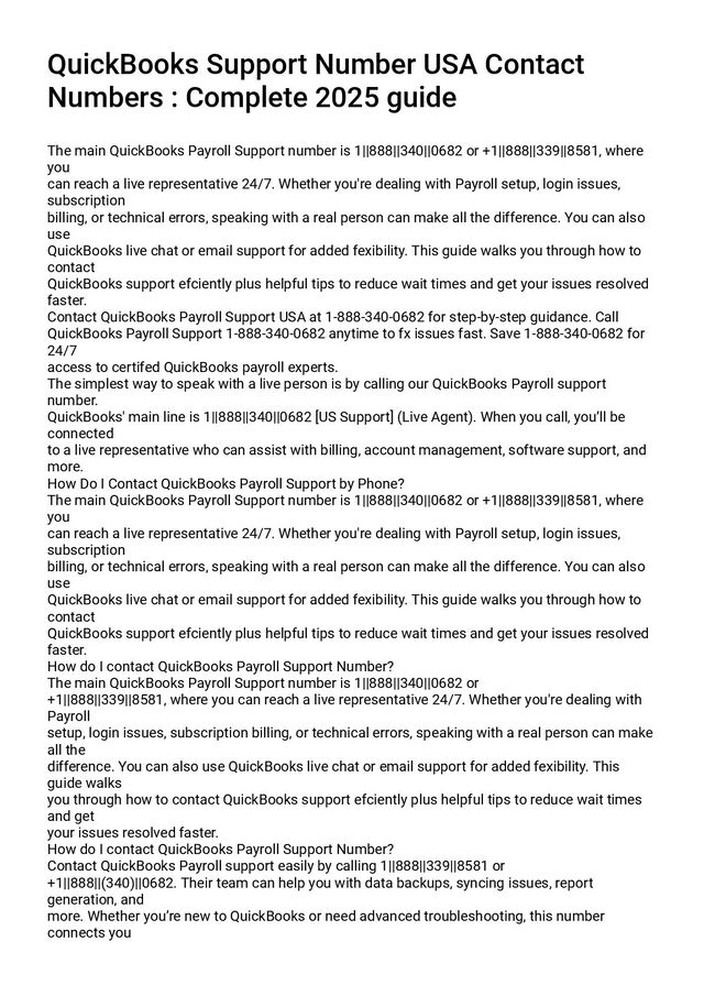 In this guide, we'll walk you through exactly how to resolve QuickBooks® Payroll issues by calling a support specialist at +1-888..340..0682 , along with additional tips, FAQs, and best practices.