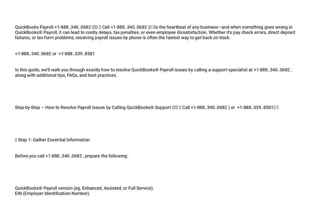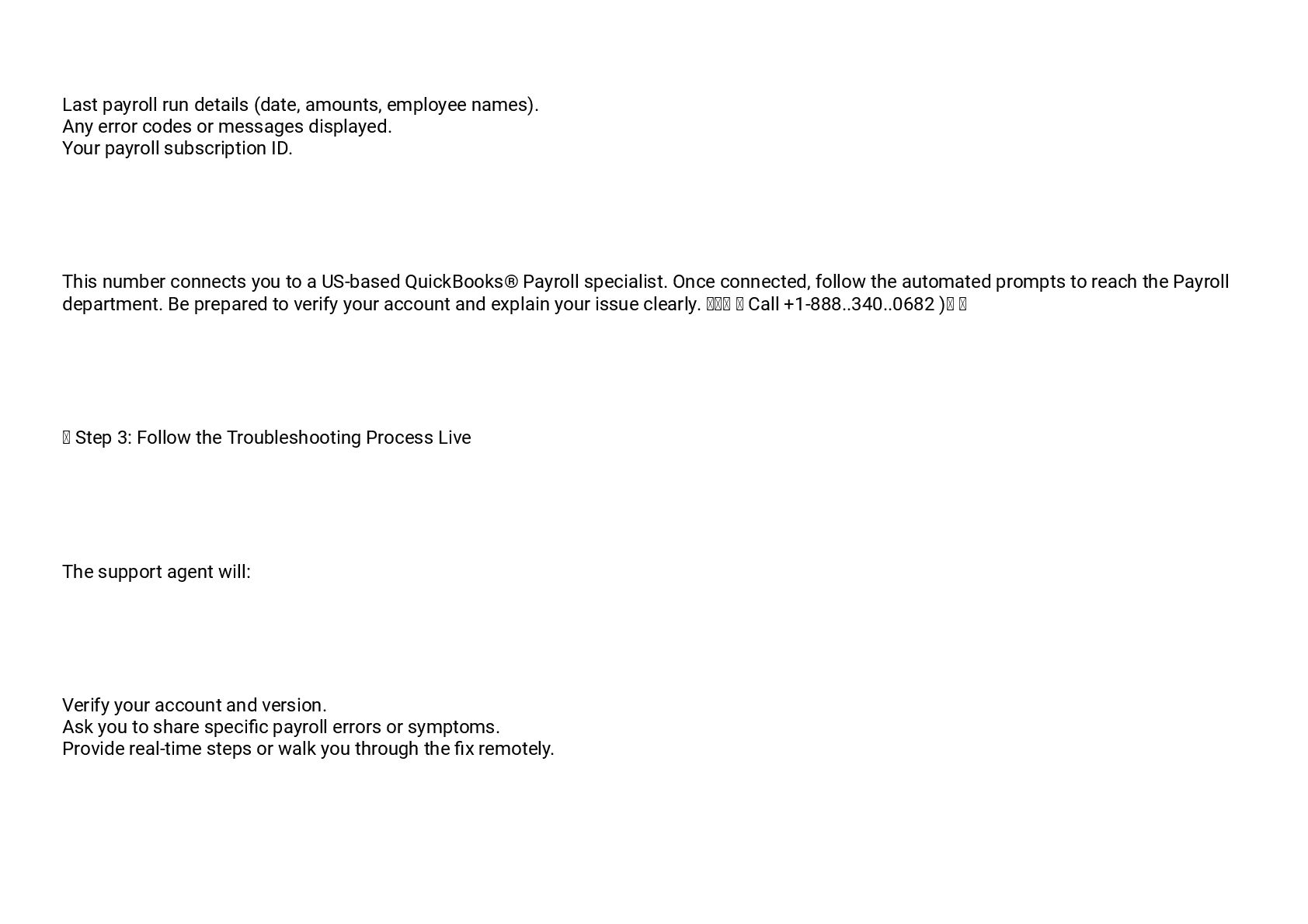 Handling payroll can get tricky, especially with tax updates, direct deposit issues, or employee setup problems. QuickBooks™ Payroll users can get specialized support from our payroll experts. Whether you’re facing paycheck errors or need help submitting payroll taxes, you can speak directly to our payroll specialists at 1–888–339–8581 or +1–888–(340)-0682.