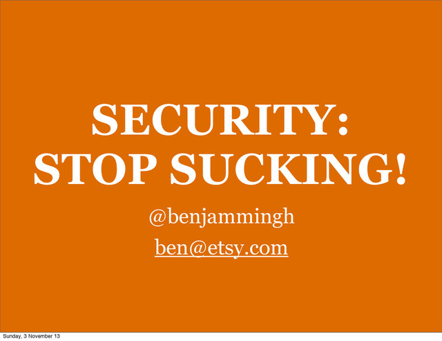 your company) •Let anyone come to your internal security reviews/post-pen-test. •Remove names, as it’s not about who, it’s about how. Sunday, 3 November 13