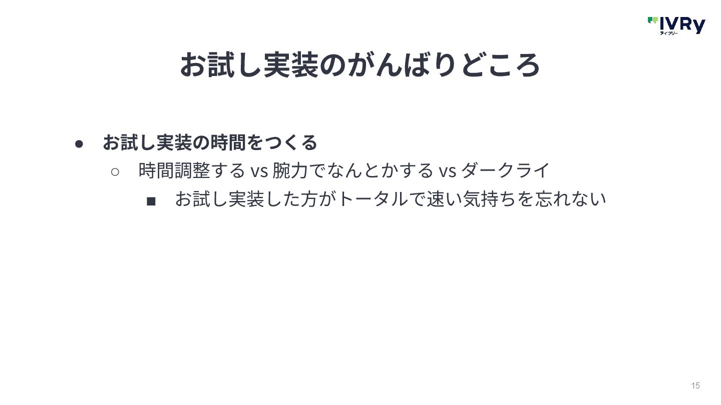▪ お試し実装した⽅がトータルで速い気持ちを忘れない