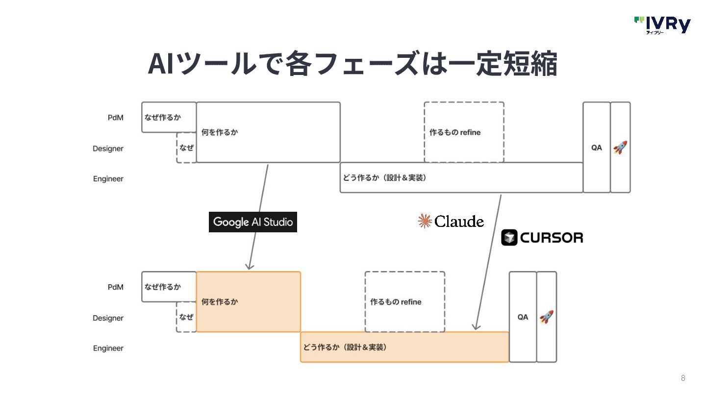 よく⾒るプロジェクト進⾏ 7 • プロジェクトのイメージ ◦ 新機能開発、UI の追加/修正あり • 進⾏例 ◦