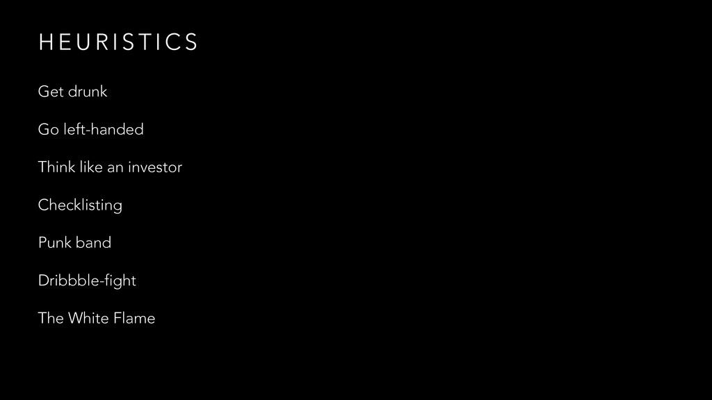 T I C S W H E R E ’ S Y O U R H E A D A T Get drunk Try using your app when you’re tired Close one eye Turn down the lights Time-test Try to do an urgent process while a baby screams at you Go left-handed Try a mouse, trackpad, tablet Use keyboard and tab Use voice-over Try colour blindness simulators No shortcuts Use a tiny monitor