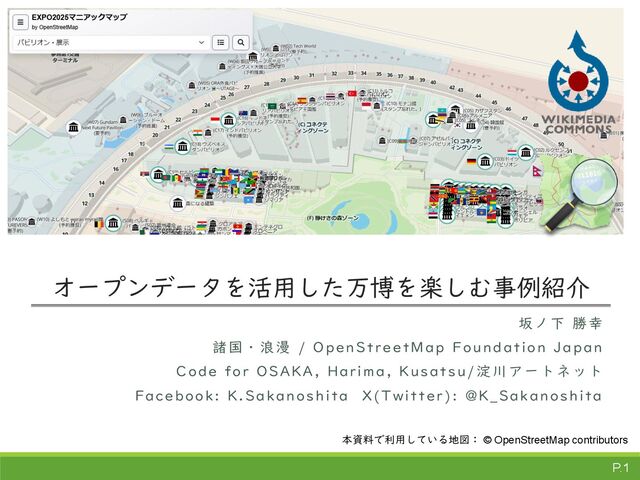 オープンデータを活用した万博を楽しむ事例紹介 坂ノ下 勝幸 諸国・浪漫 / OpenStreetMap Foundation Japan Code for