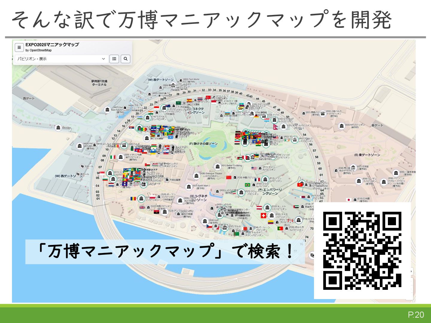 P.20 そんな訳で万博マニアックマップを開発 「万博マニアックマップ」で検索! P.20