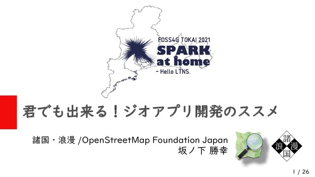 1 / 26 君でも出来る!ジオアプリ開発のススメ 諸国・浪漫 /OpenStreetMap Foundation Japan 坂ノ下 勝幸