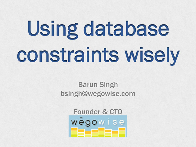 Using database constraints wisely Barun Singh