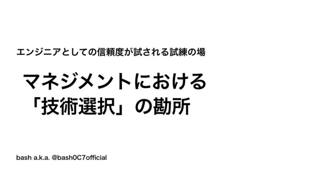 Ϛωδϝϯτʹ͓͚Δʮٕज़બʯͷצॴ ͜ͷൃදͷ֓ཁ Ϛωδϝϯτͱ͍ͬͯରʹΑͬͯऔΔ͖ߦಈҟ ͳΓ·͕͢ɺιϑτΣΞΤϯδχΞͱͯ͠Ϛωδϝϯτʹ ܞΘΔͳΒɺϚωδϝϯτͱٕज़બͦͷͷͱݴ͑ ·͢ɻ͜ͷτʔΫͰɺΘ͕ͨ͠۩ମతʹ໘ͯ͠Ͳ͏͍ ͏ٕज़ΛͲͷΑ͏ͳཧ༝Ͱબͼऔ͖͔ͬͯͨɺͦͷ݁ՌͲ ͏ͳ͔ͬͨΛհ͠·͢ɻ ϚωδϝϯτʹܞΘΓͩͨ͠ͱ͖ɺԿΛͲ͏͢Ε͏· ͘ߦͬͨͱݴ͑Δͷ͔ͷෆ͕҆ଟ͋͘Δͱࢥ͍·͢ɻͦΕ