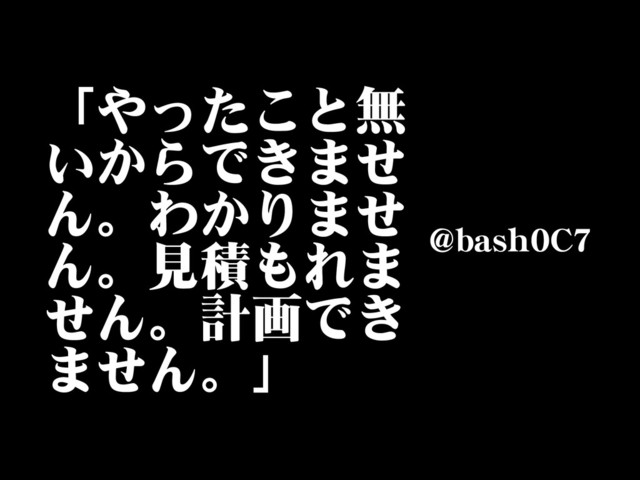 「やったこと無 いからできませ ん。わかりませ ん。見積もれま せん。計画でき ません。」 @@bbaasshh00CC77