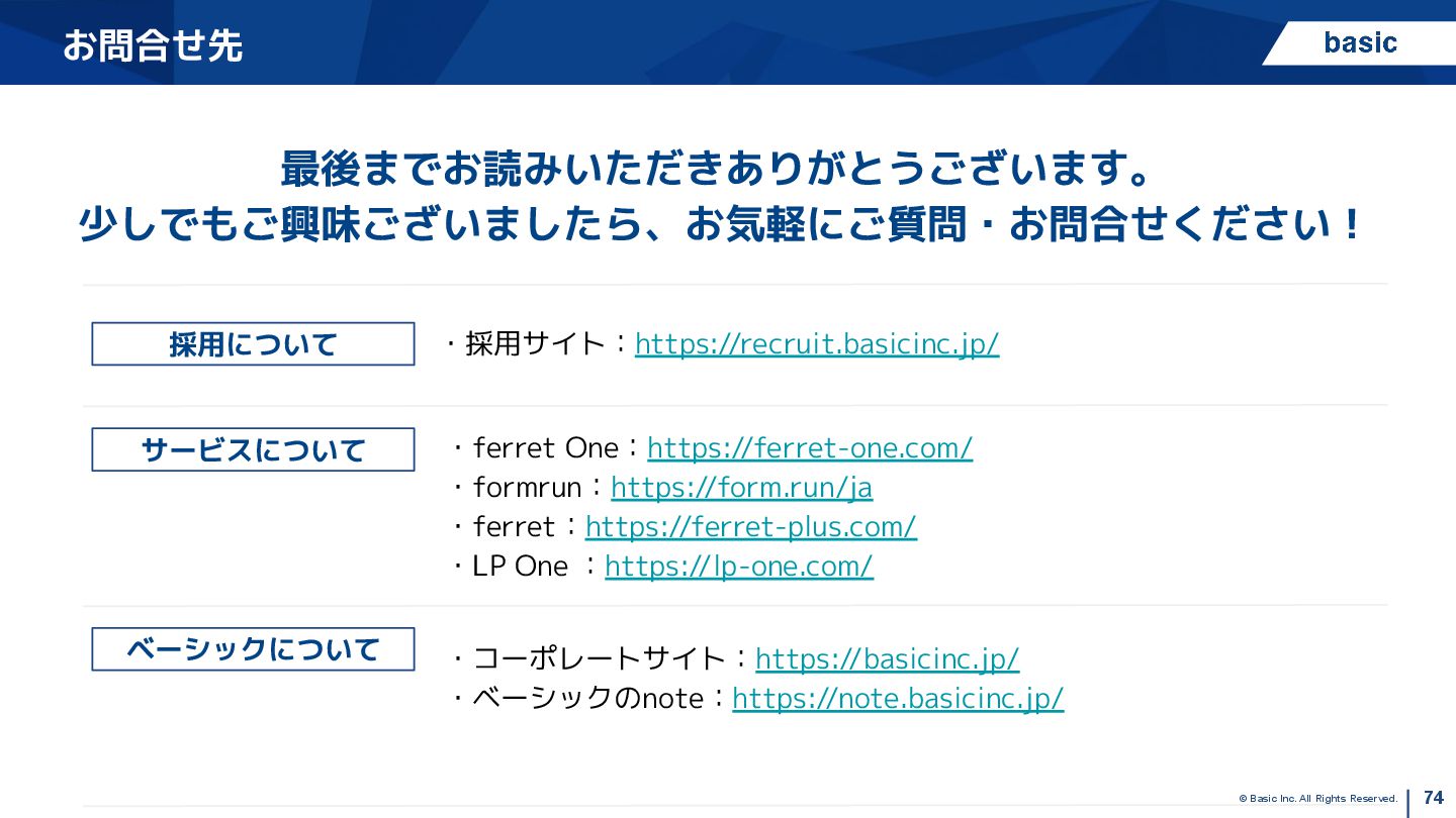 セールス部 神田 智貴 2017年入社 (関西大学出身) 経歴 • 大学在学時にアメリカに1年間留学して「世界は広いなぁ」と思って学生起業(英会話サービス) • リクナビやマイナビを使ったいわゆる就活はしてなくて、ベーシックとリタリコだけを受けて入社 • 入社してからずっとferret Oneというプロダクトのセールスを担当しています! 成果 • ferret One個人単月受注件数ギネス:10件! • ferret One個人受注総額ギネス:2,284万円 / 1案件にて • 2018年4QMVP / 2020年2Q準MVP / 2020年年間MVP / 2023年下期MVG など ベーシックを選んだ理由 “どうせやるなら誰と喜びたいか?って問いに対して、僕の中ではベーシックだったから” 人生は有限だから、何をやるかよりも圧倒的に誰とやるかが自分の人生において幸福度が高いと思っている 且つ最高の仲間と最高に楽しい仕事をして美味いお酒を飲みたいと思っているのが根底のマインドセットで す。仲良くしてくださった社長さんや会社人事の方もいらっしゃいましたが、自分の中でベーシックだった ら最も自分が貢献して、一緒に喜びたいなと思えたから入社しました! 仕事に対するスタンス・大事にしているポイント 未来志向で働く: “今の課題”ももちろん大事ですが、それはつまり”過去の問題”が引き起こしたものだから、 未来にそういうことが起こらないように未来軸で論点を整理するようにしています ご機嫌に働くこと: 他者の幸せを喜べる人、自分の悲しさをポジティブに変換できる人、そんなチーム作りをしたいなと思って ます