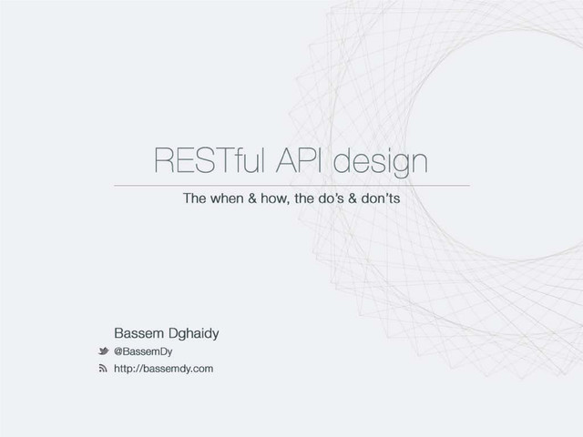 RESTful API Design discuss the high level guidelines to developing a proper API for a given web application. This talk was presented during Developer Talks vol2.0 June 2013.