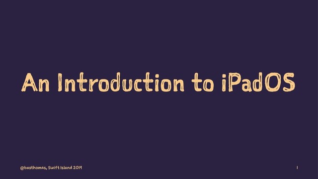 How does multiple window support on iPadOS work under the hood? 4 Introduction to lifecycles using scenes 4 Code along building a small iPadOS app, focusing on multiple window support, leveraging drag-and-drop, and state restoration. 4 Hands-on: use these learnings in your own, or open source, app @basthomas, Swift Island 2019 4