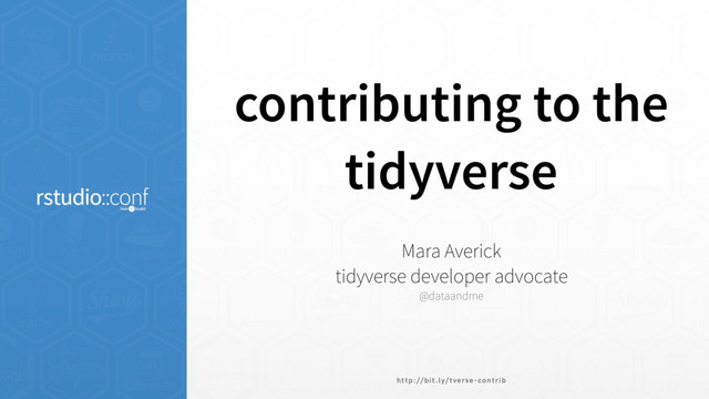 o n f resources 33 • Happy Git and GitHub for the useR by Jenny Bryan. • Contribute to the tidyverse (incl. ways to contribute that don't involve writing code). • Contributing Code to the Tidyverse by Jim Hester. • R packages by Hadley Wickham. • Git and GitHub • Automated checking • Object documentation • Testing • dplyr’s NEWS.md is a good source of examples for both content and styling. • Closing issues using keywords on GitHub. • Autolinked references and URLs on GitHub. • GitHub Guides: Forking Projects.