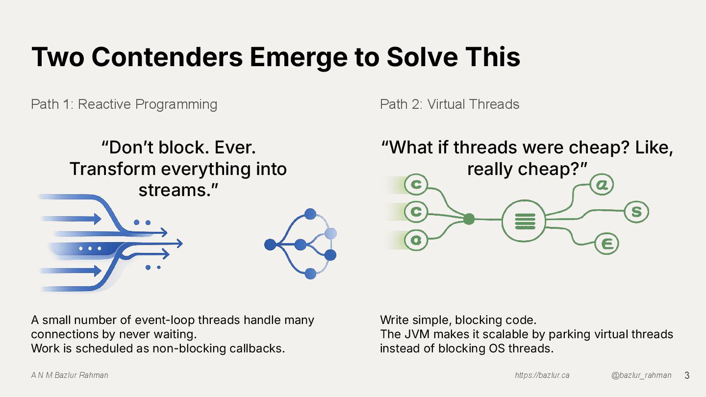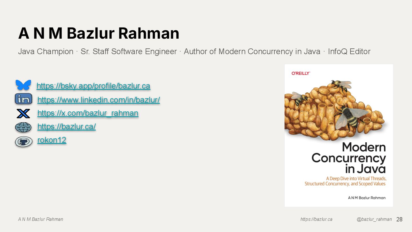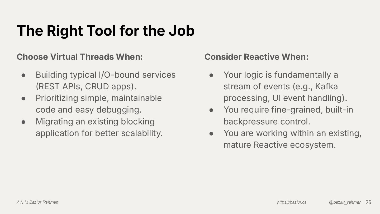 With virtual threads now in Java, is reactive programming still worth it? This talk compares traditional thread pools, Reactive Streams, and virtual threads by building the same app three ways. We’ll examine performance, memory use, debugging, backpressure, and error handling, then wrap up with a clear decision matrix to help you choose the right concurrency model for your needs.