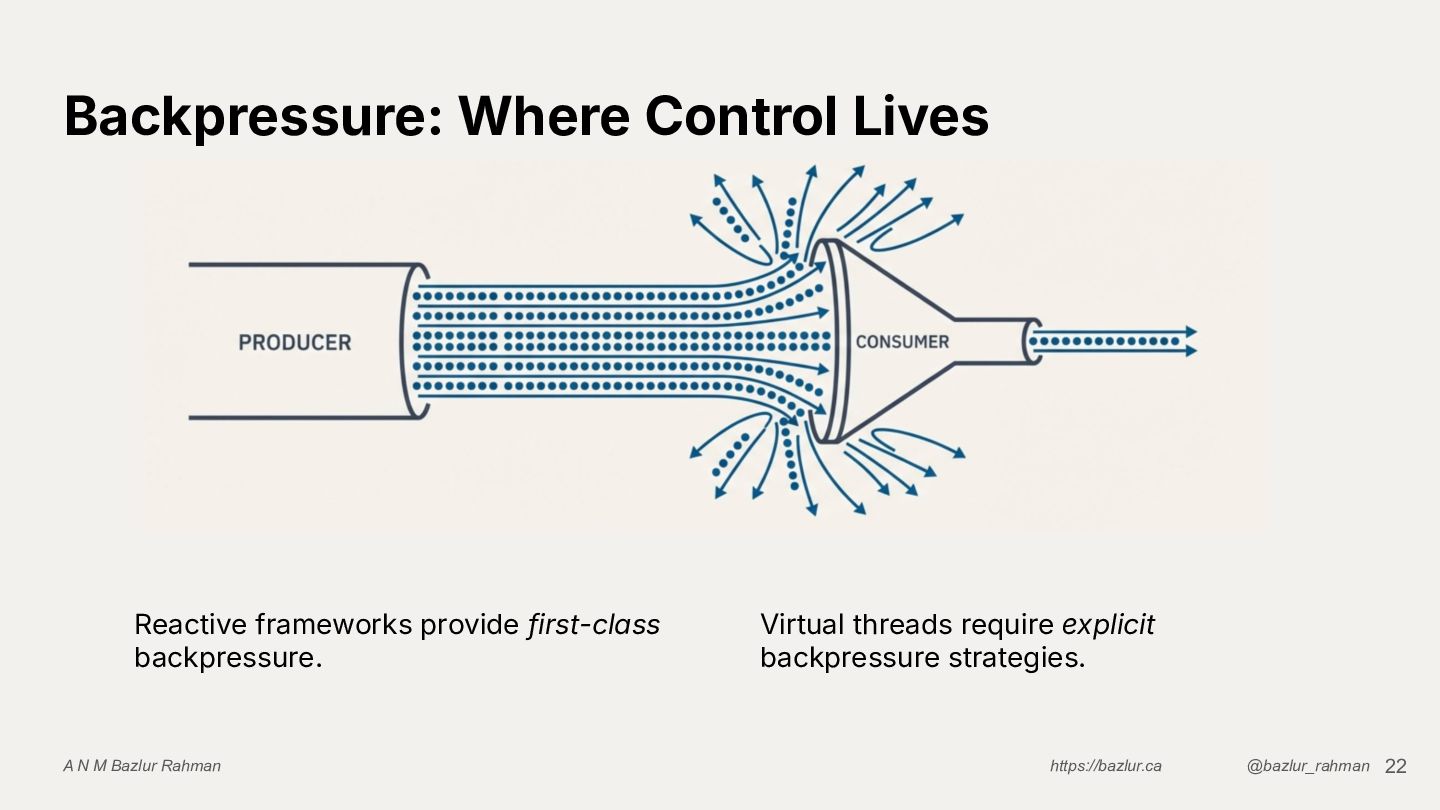 Lives 22 Reactive frameworks provide first-class backpressure. Virtual threads require explicit backpressure strategies.