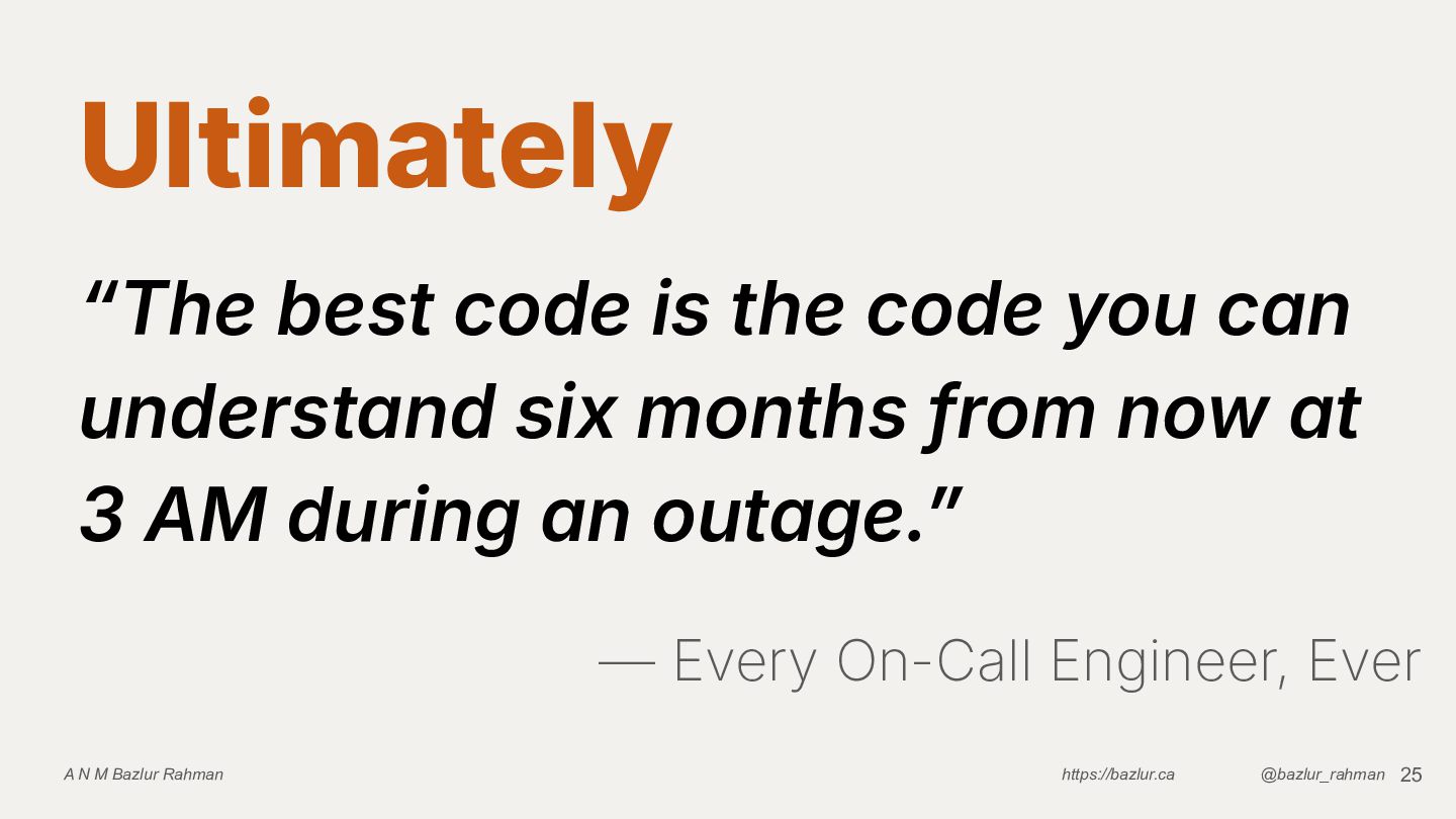 is the code you can understand six months from now at 3 AM during an outage.ˮ — Every On-Call Engineer, Ever Ultimately 25