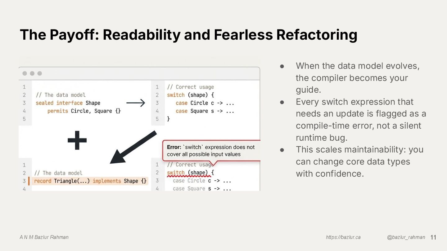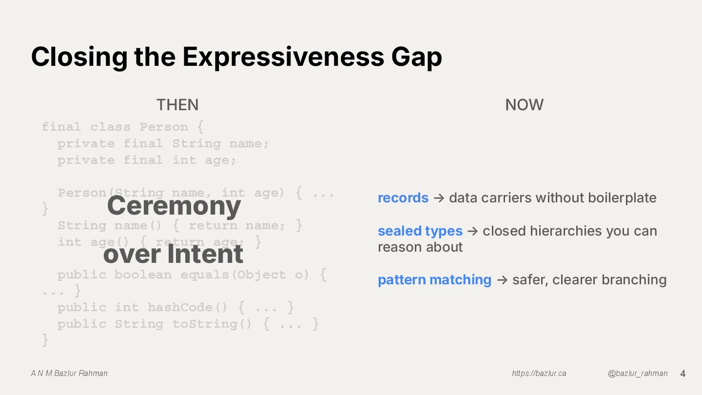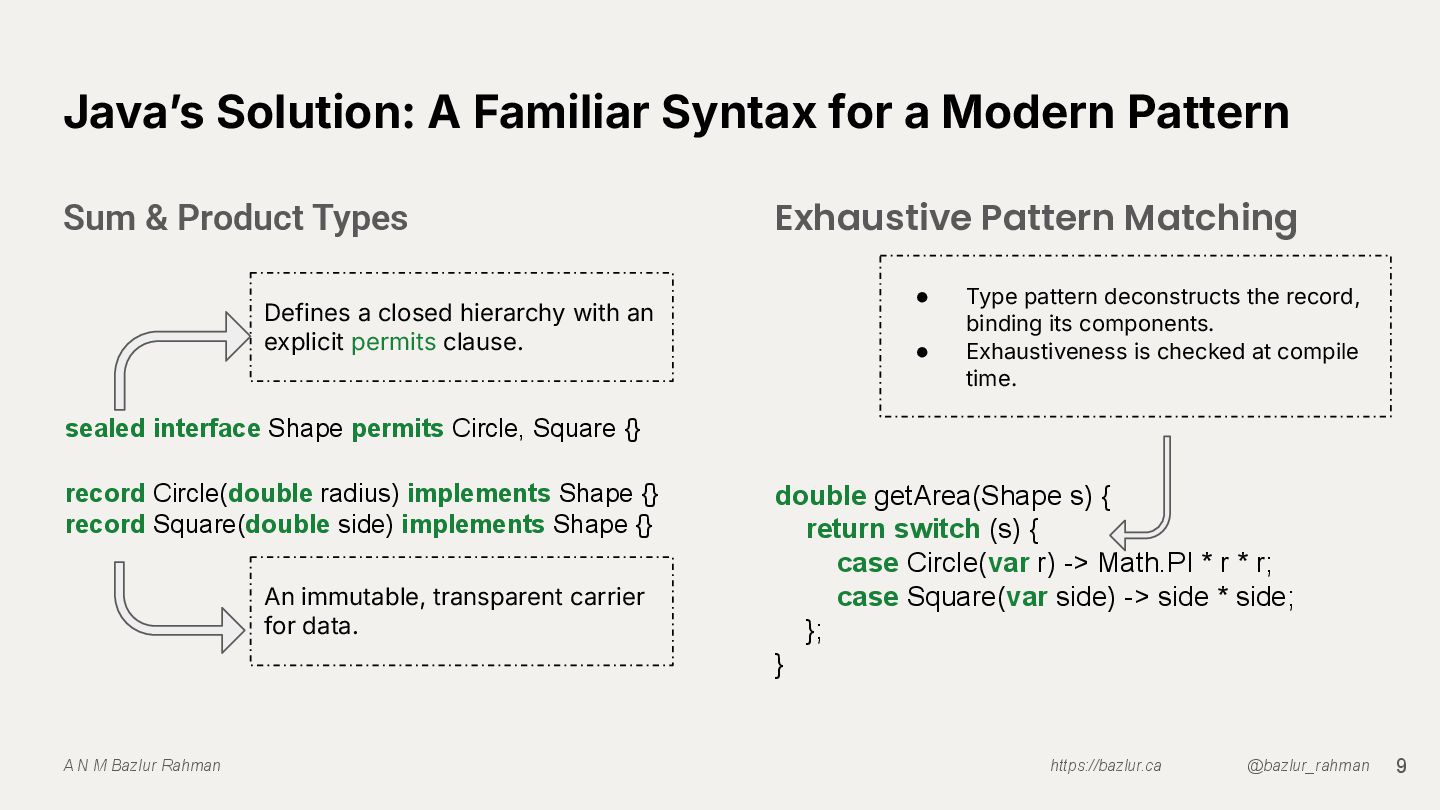 - Records for concise and immutable data modelling, akin to Kotlin's data classes