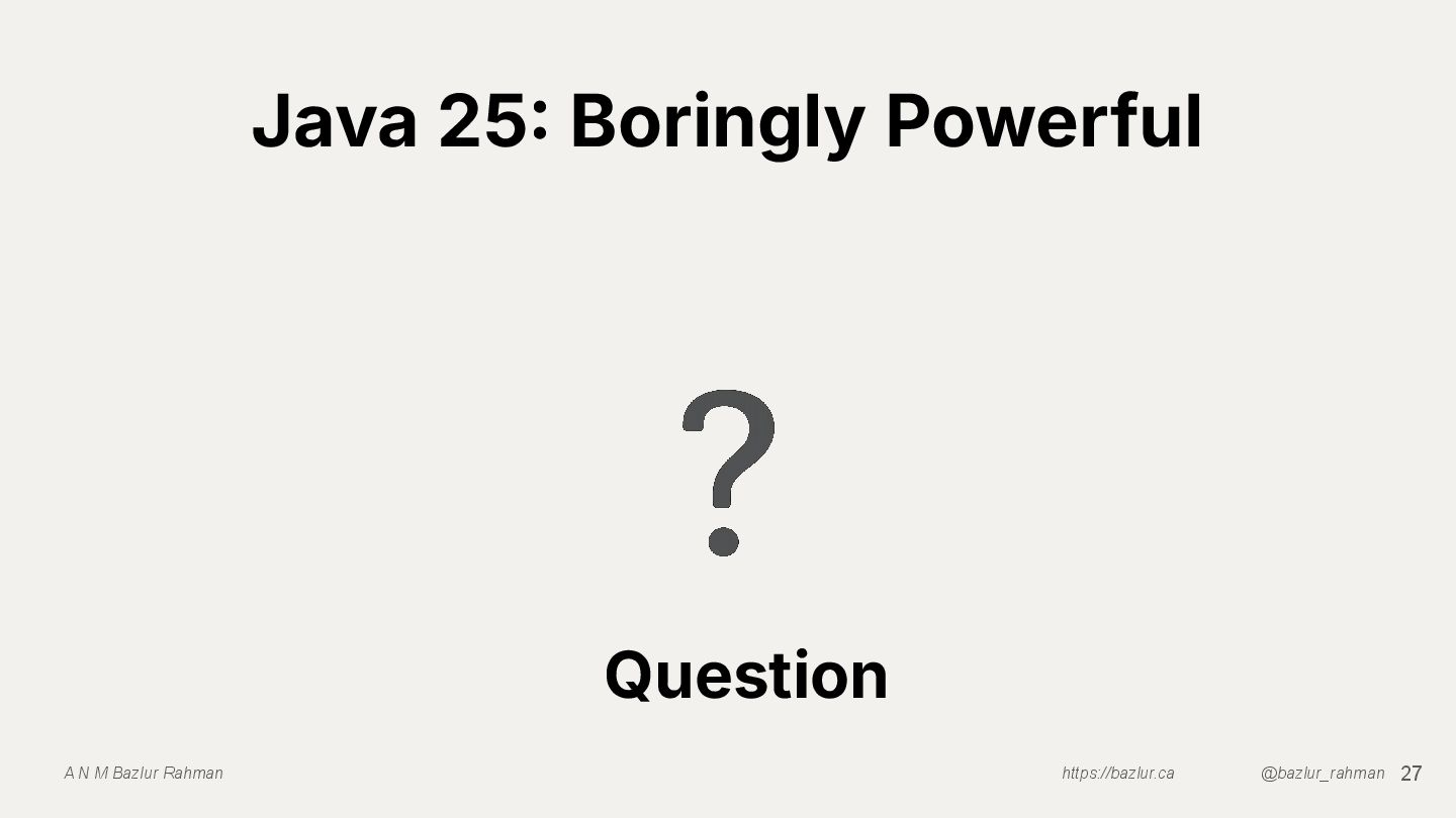 If you’ve ever dismissed Java as too verbose or outdated, this session will change your mind. See how Java 25 isn’t just catching up; it’s redefining what modern Java can be.