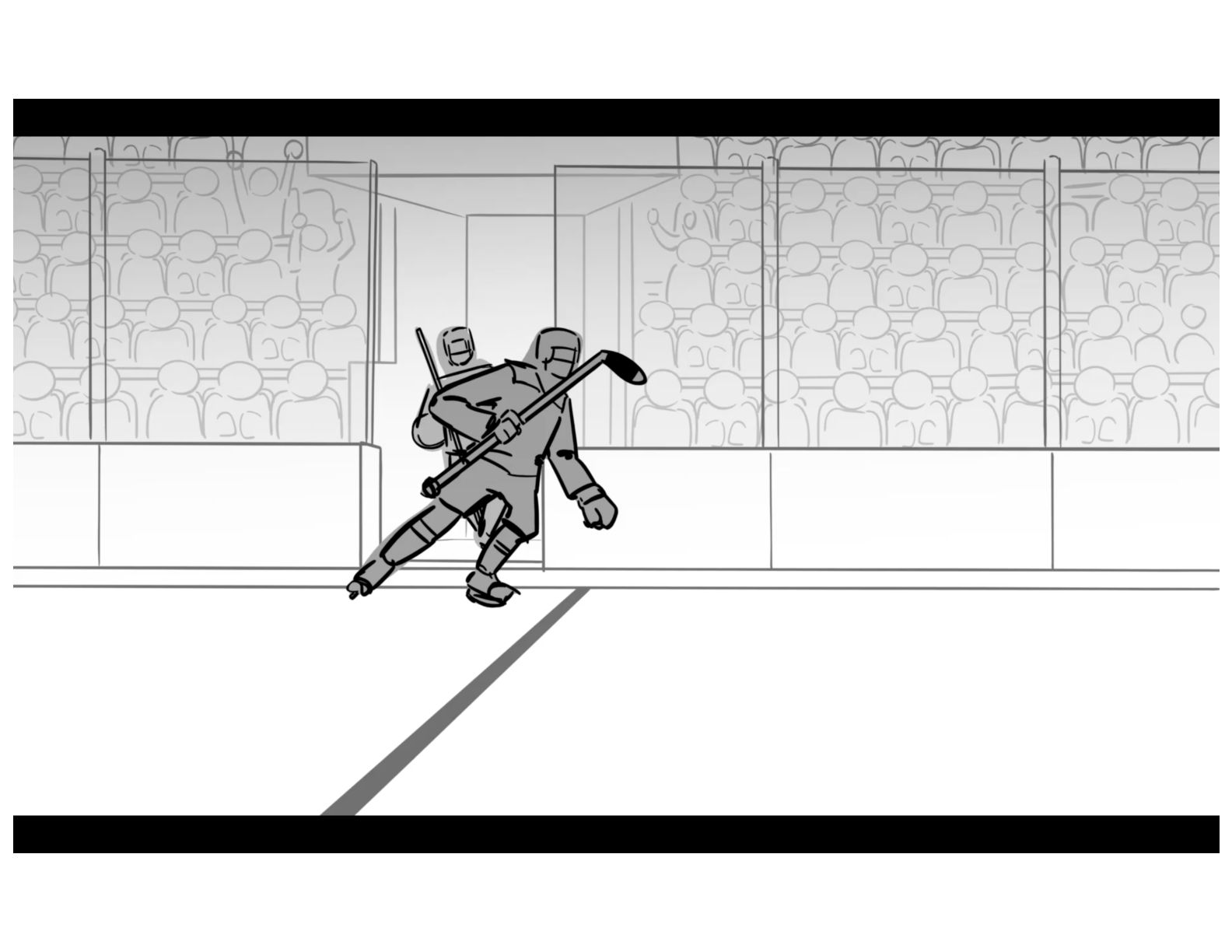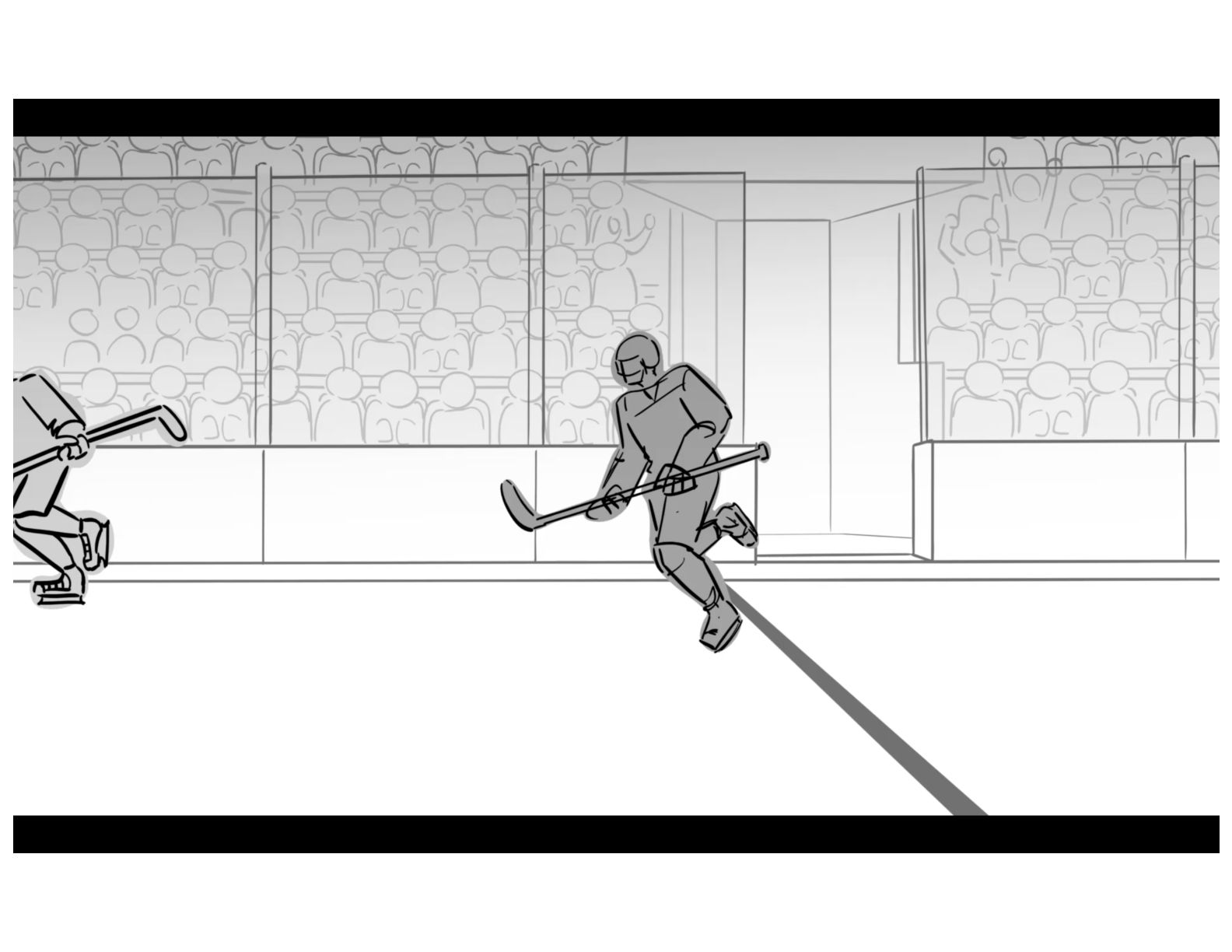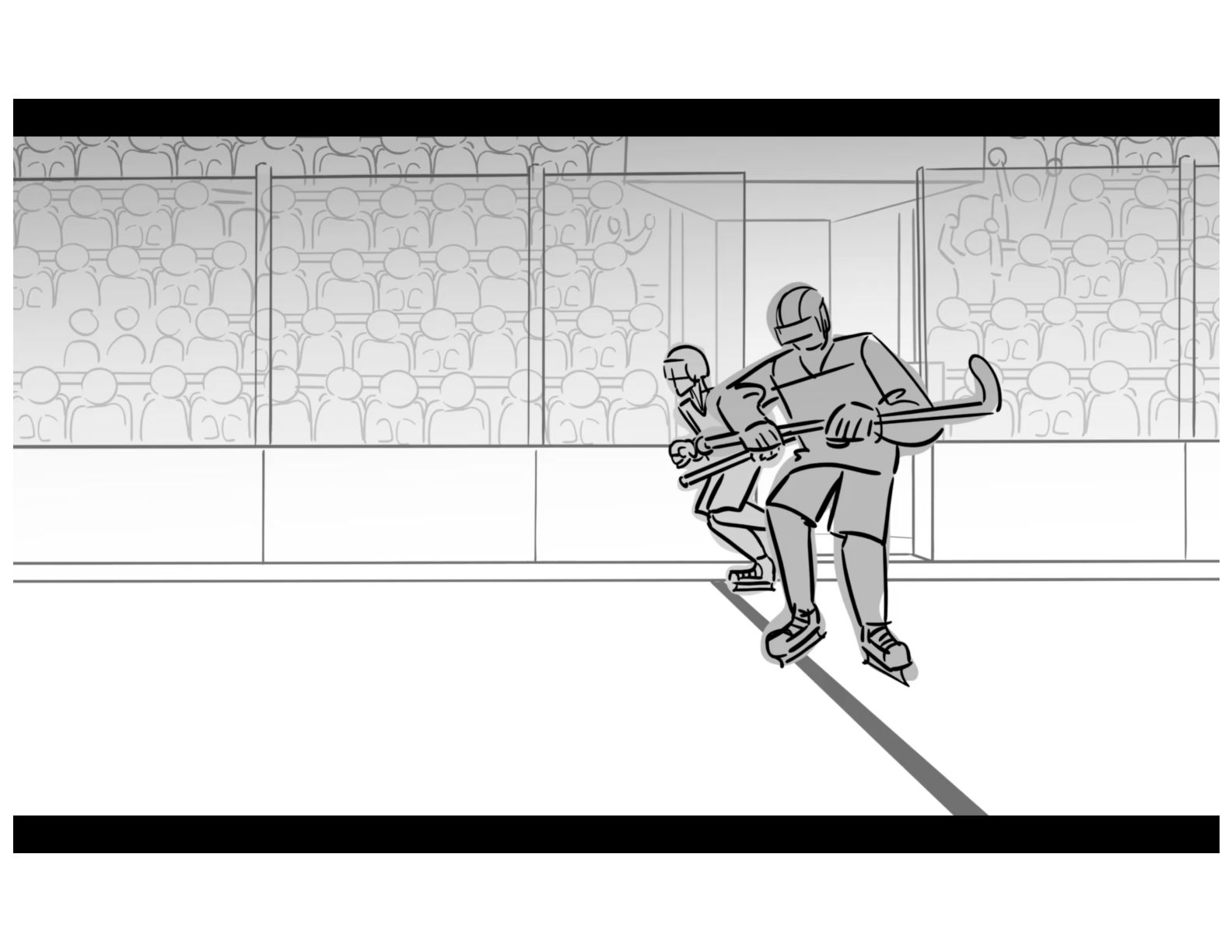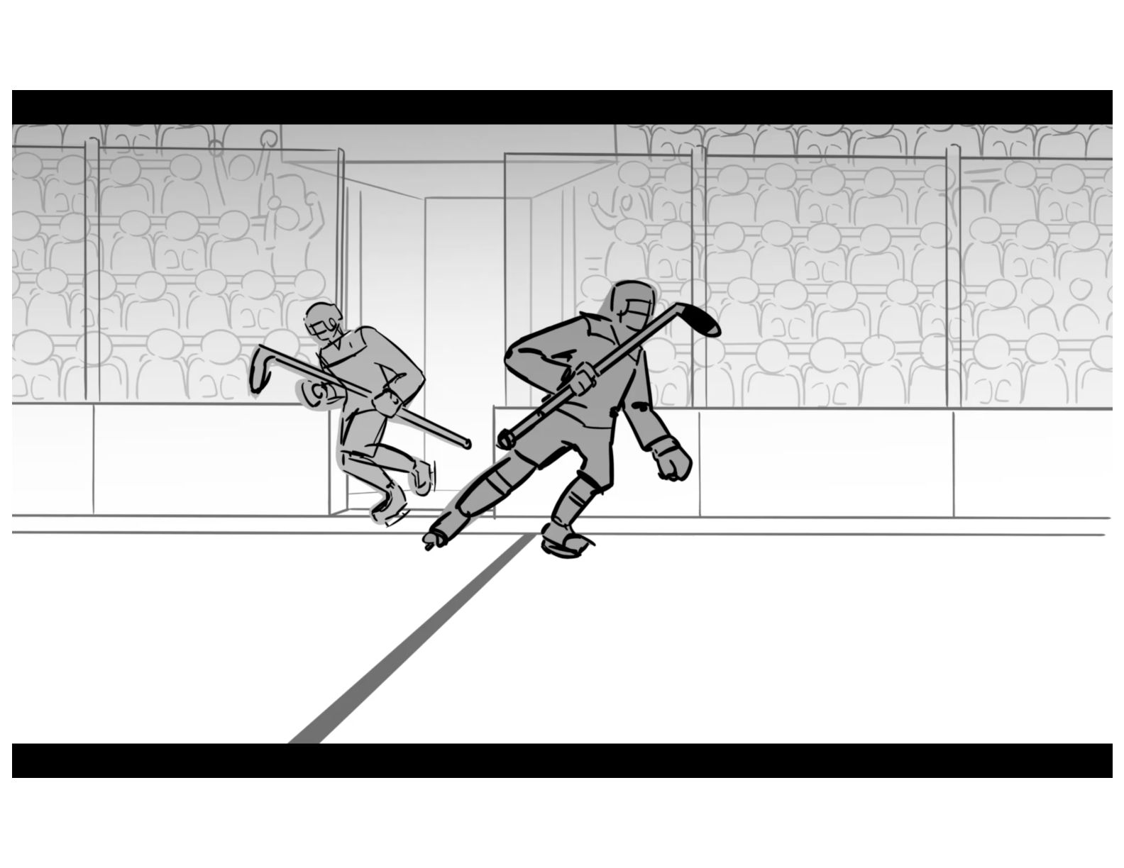 An action oriented storyboard about two rival hockey players.