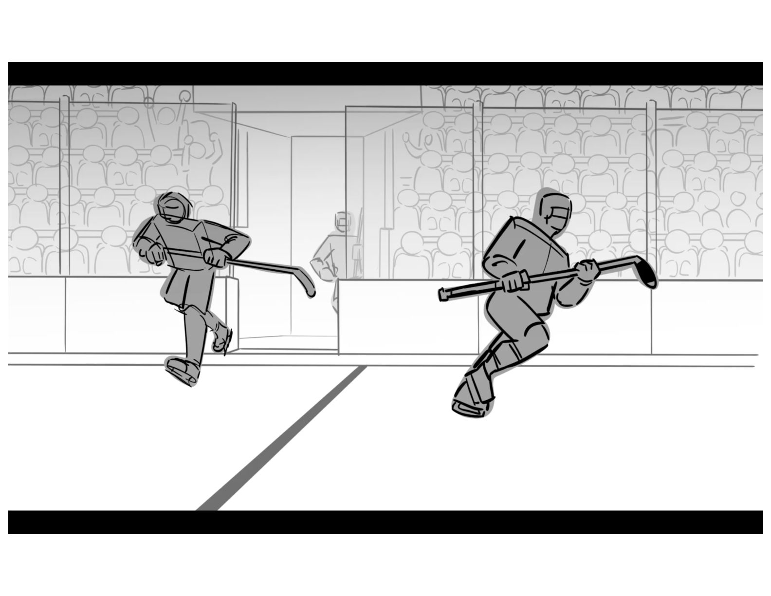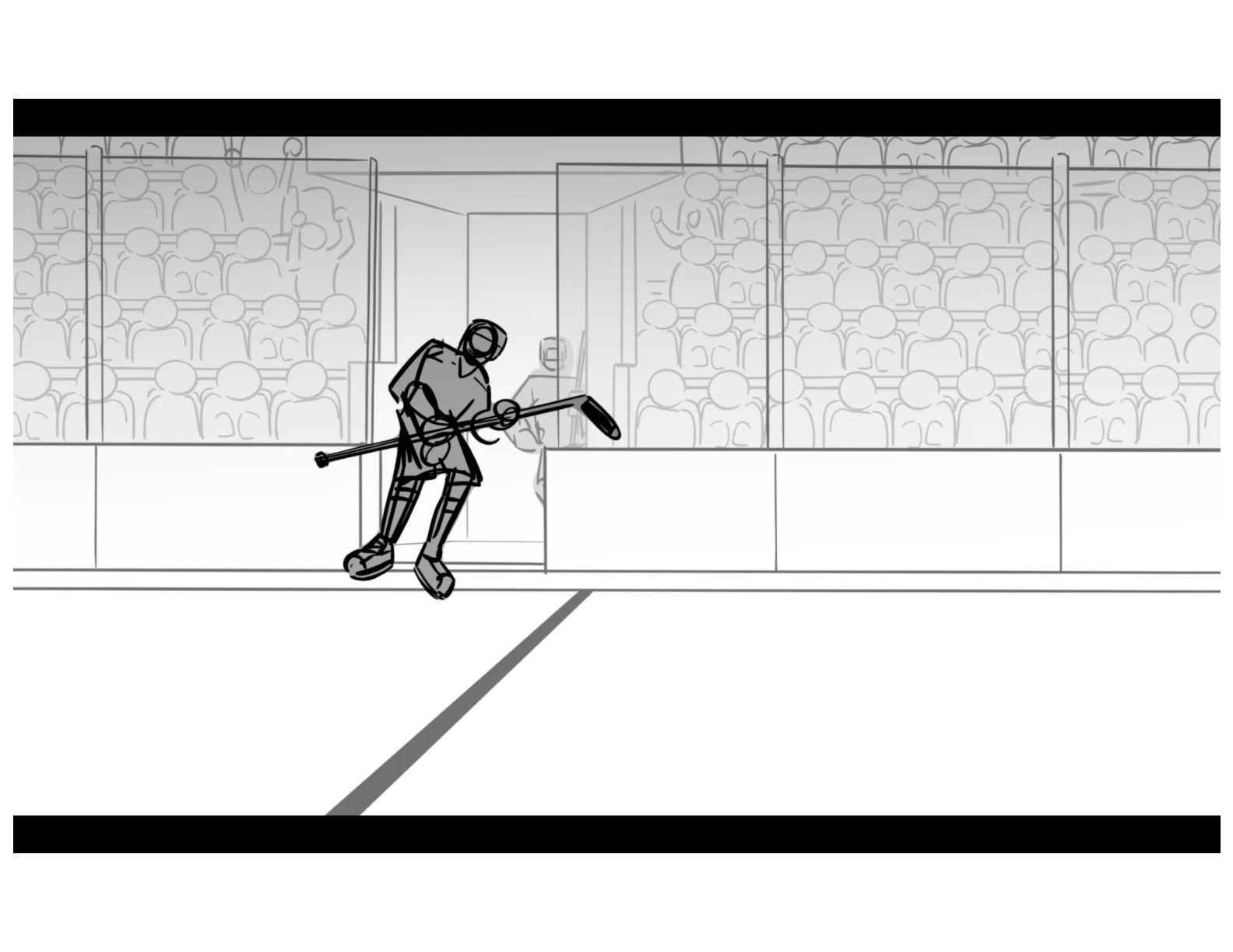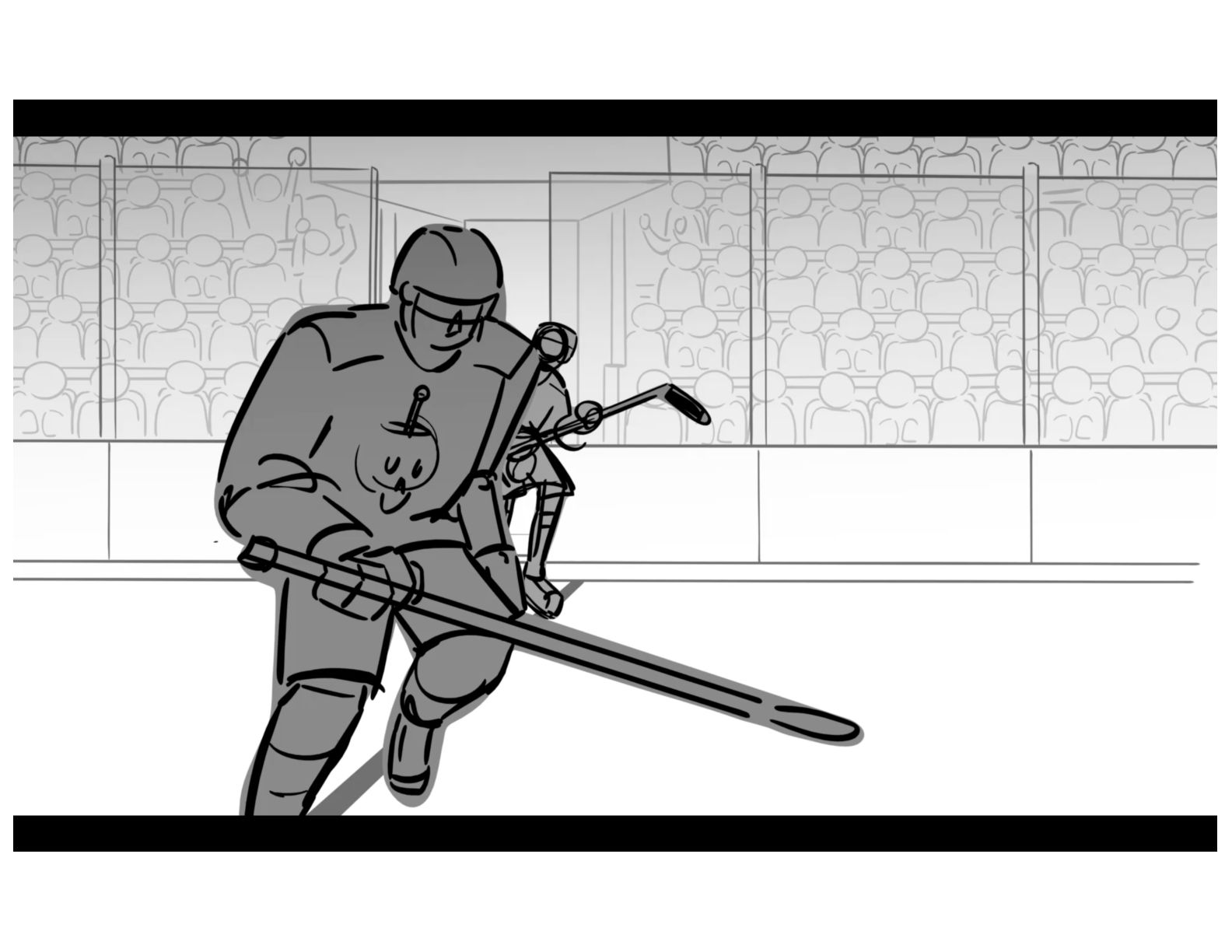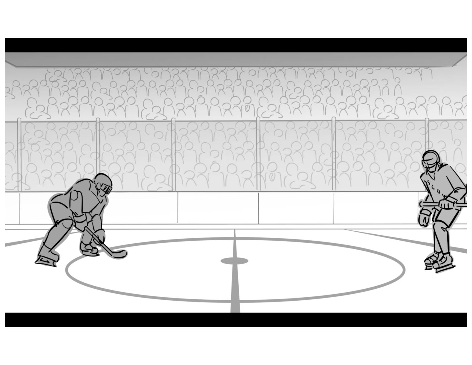 An action oriented storyboard about two rival hockey players.
