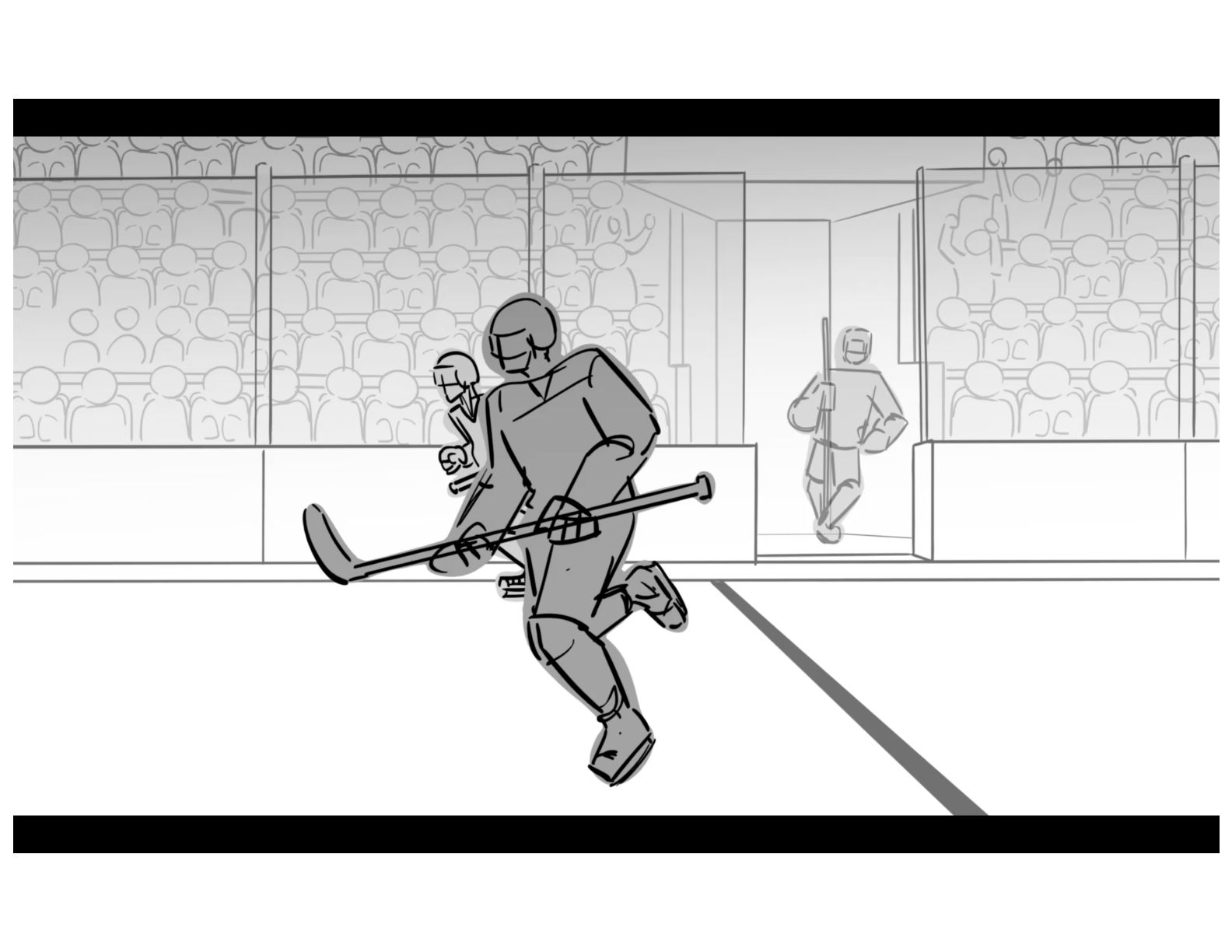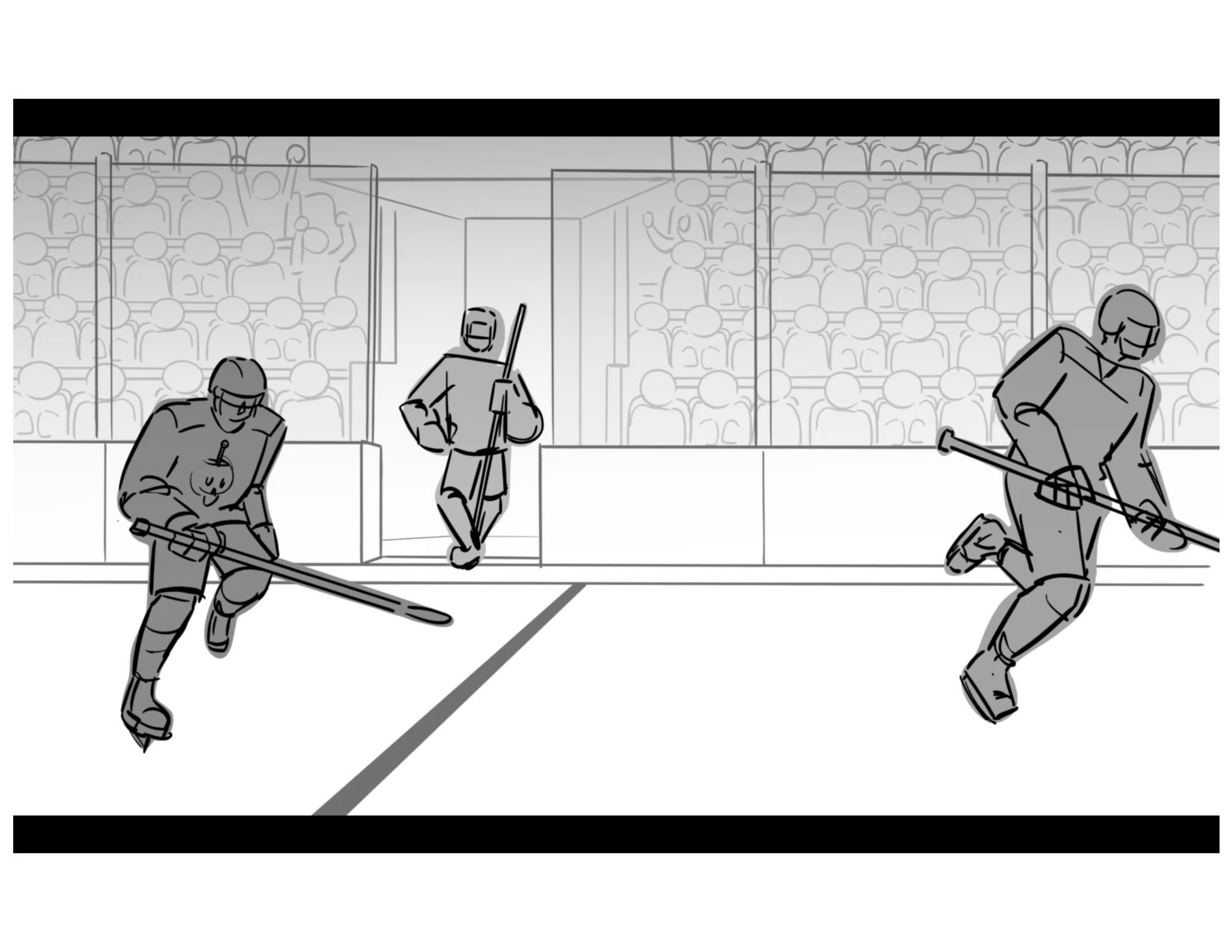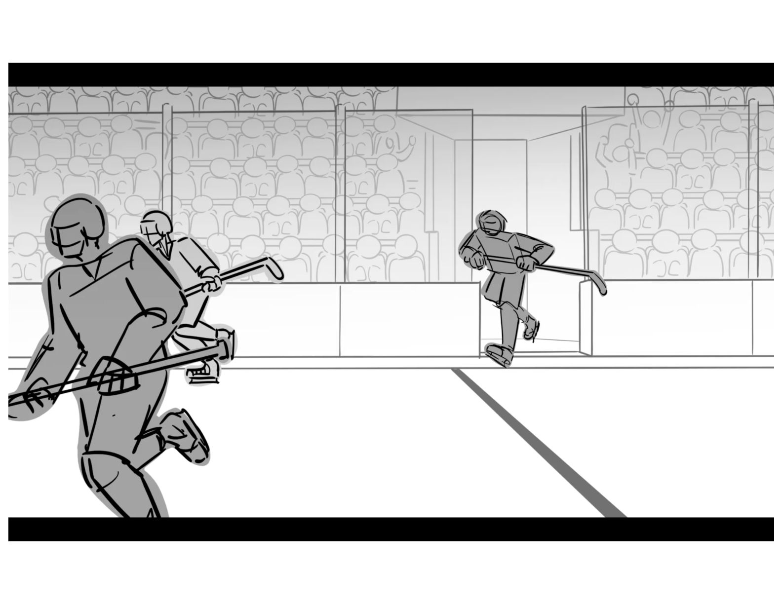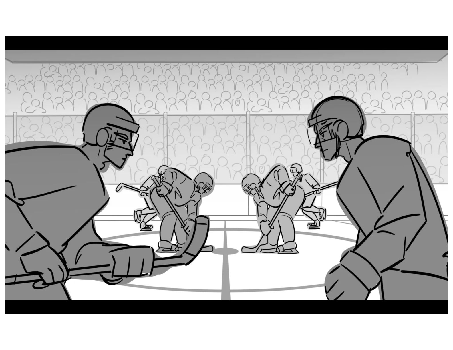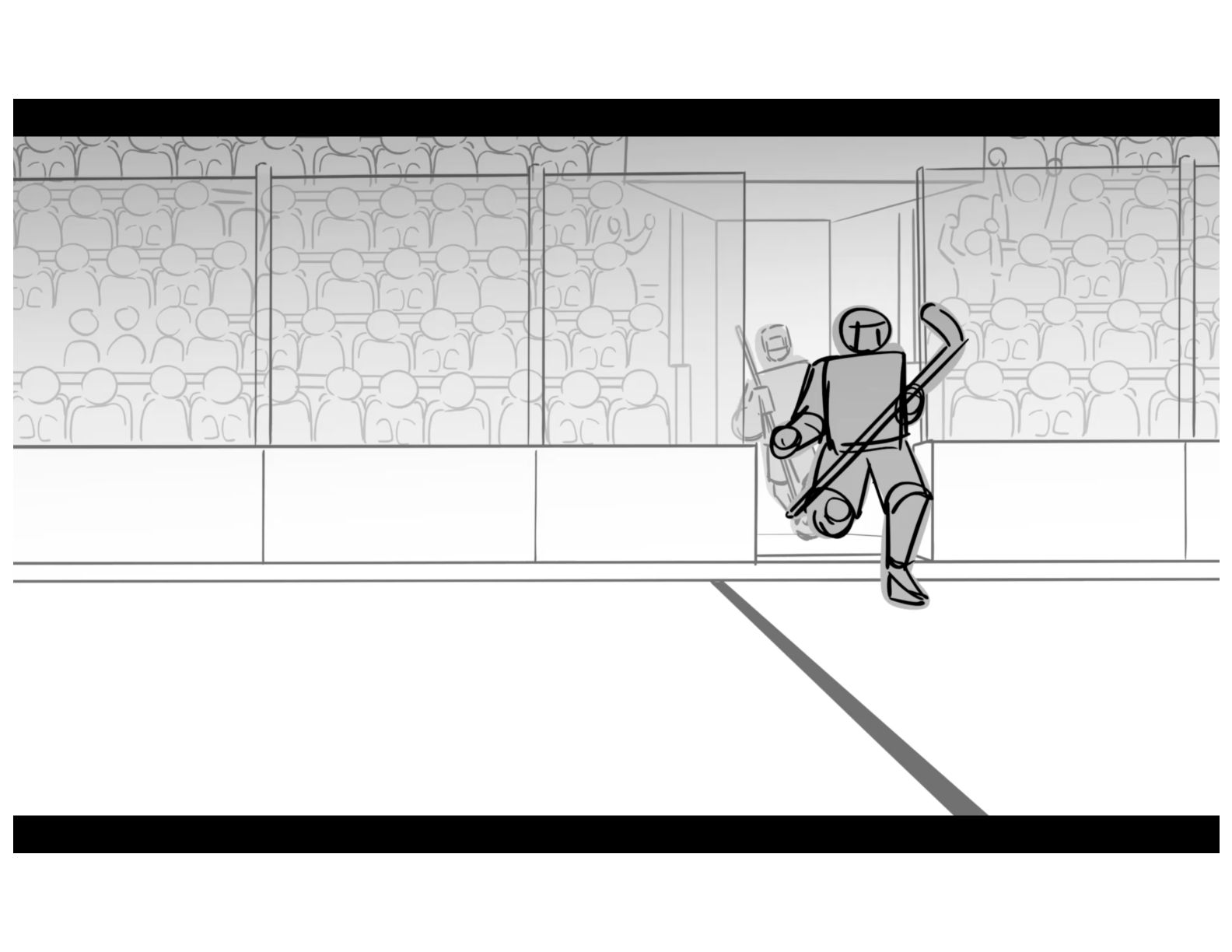 An action oriented storyboard about two rival hockey players.