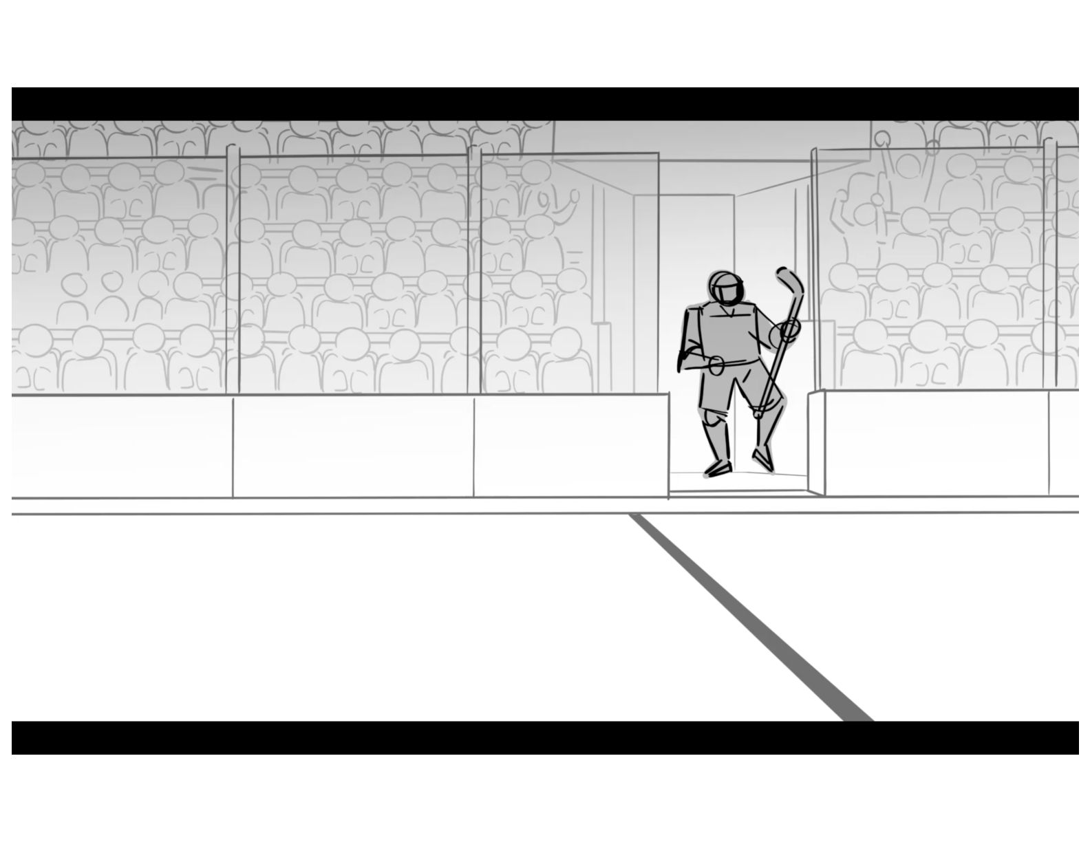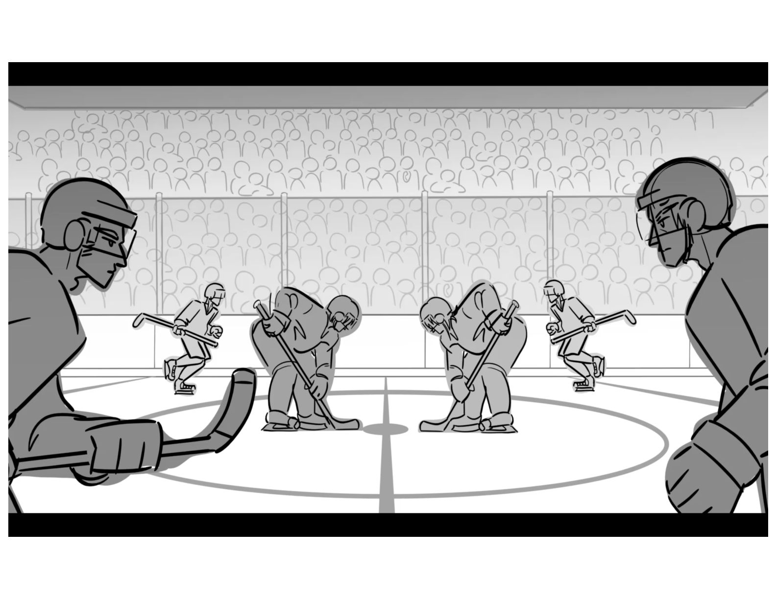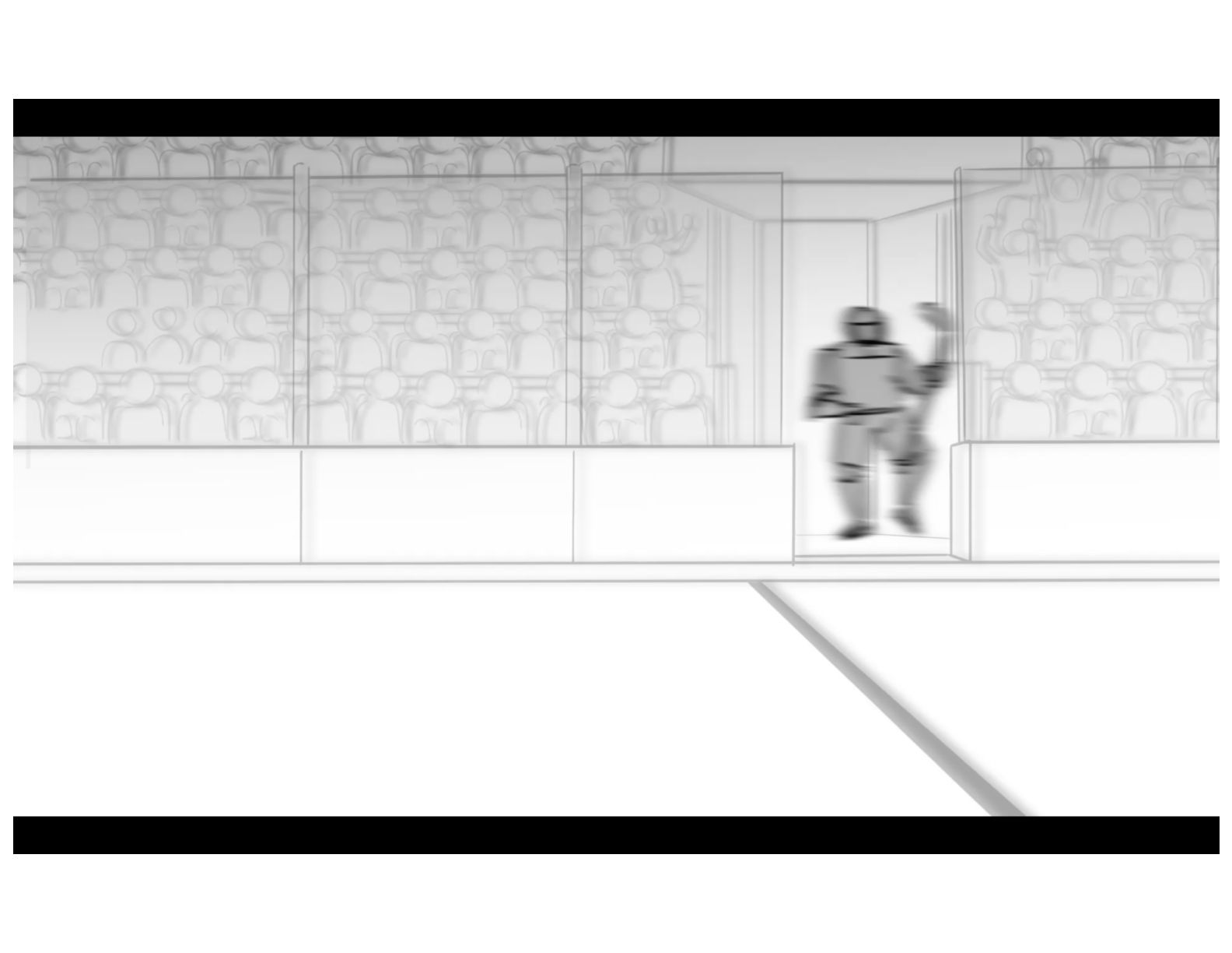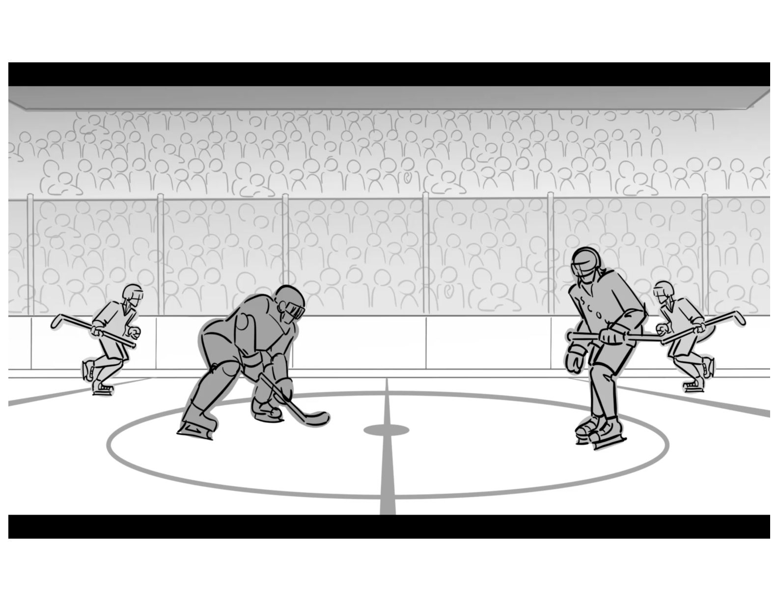An action oriented storyboard about two rival hockey players.