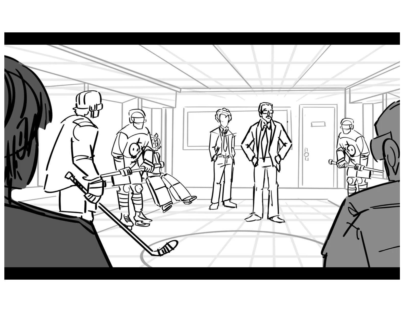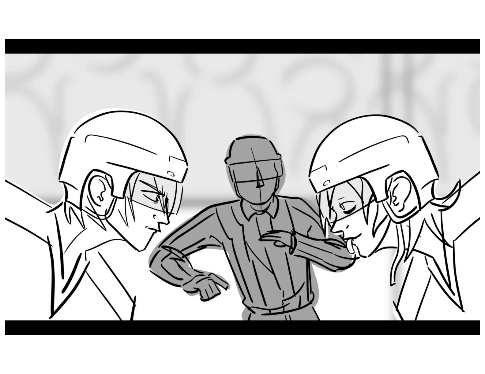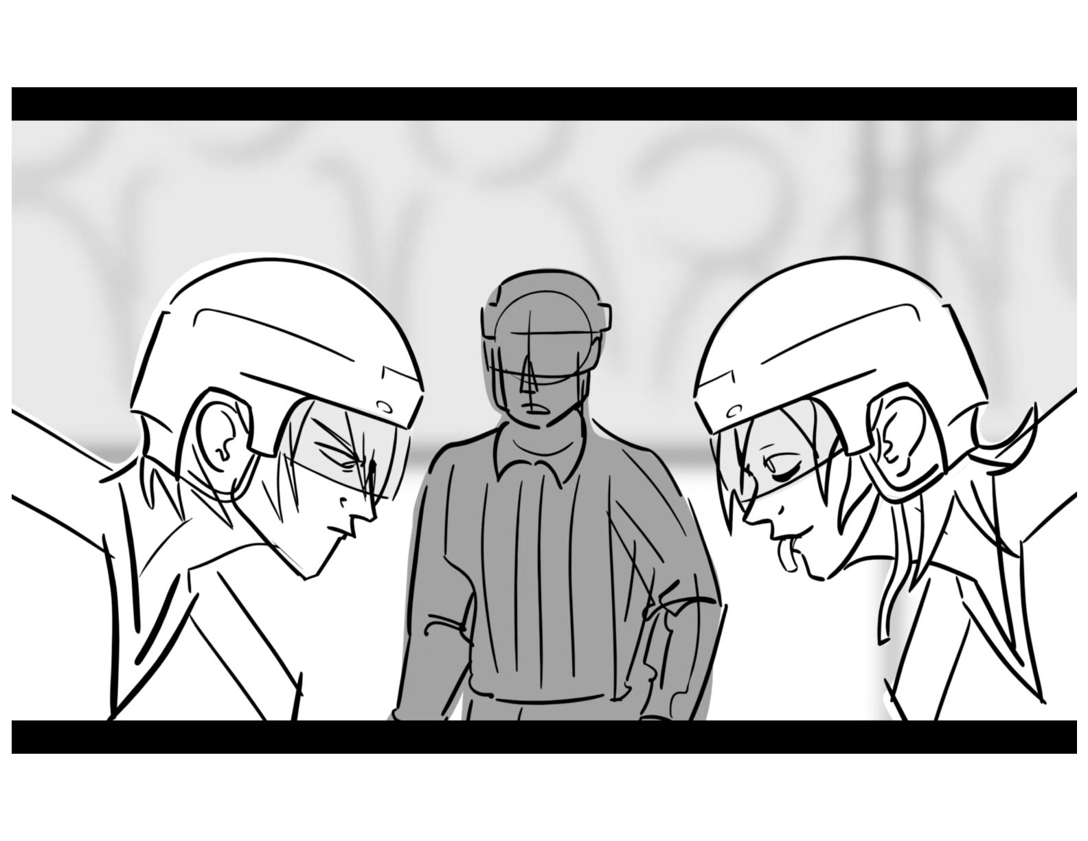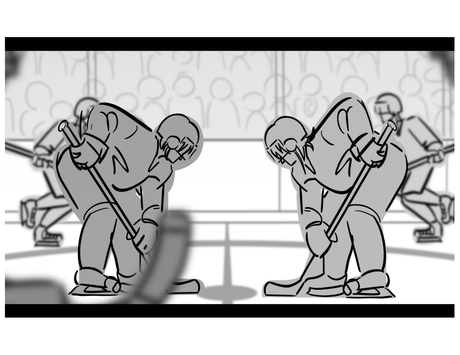An action oriented storyboard about two rival hockey players.