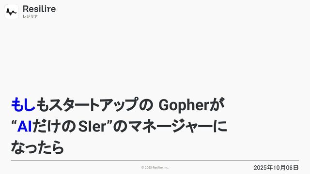 © 2025 Resilire Inc. もしもスタートアップの Gopherが “AIだけのSIer”のマネージャーに なったら 2025年10月06日 1
