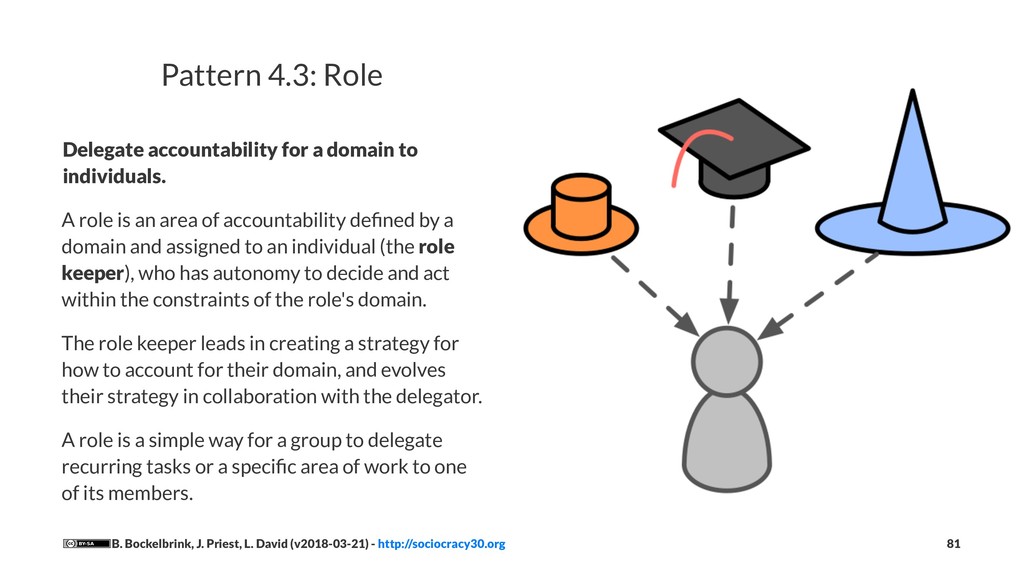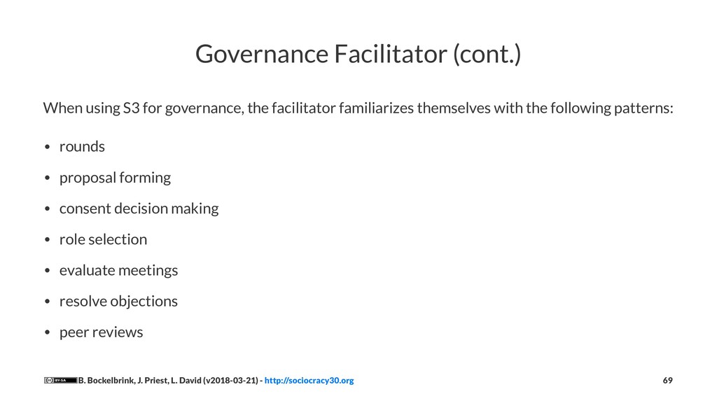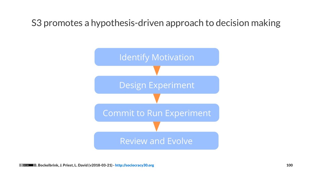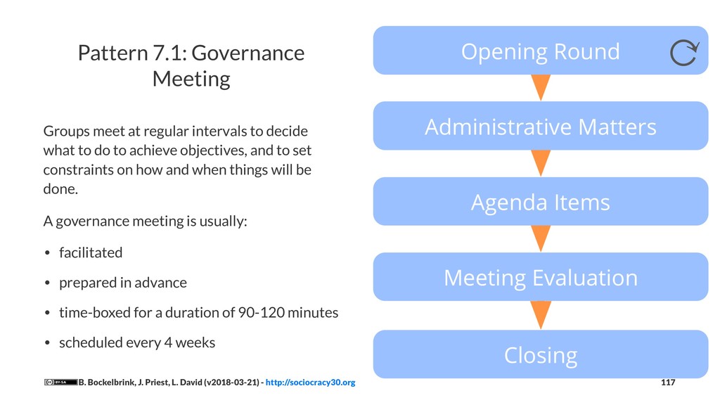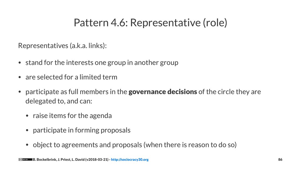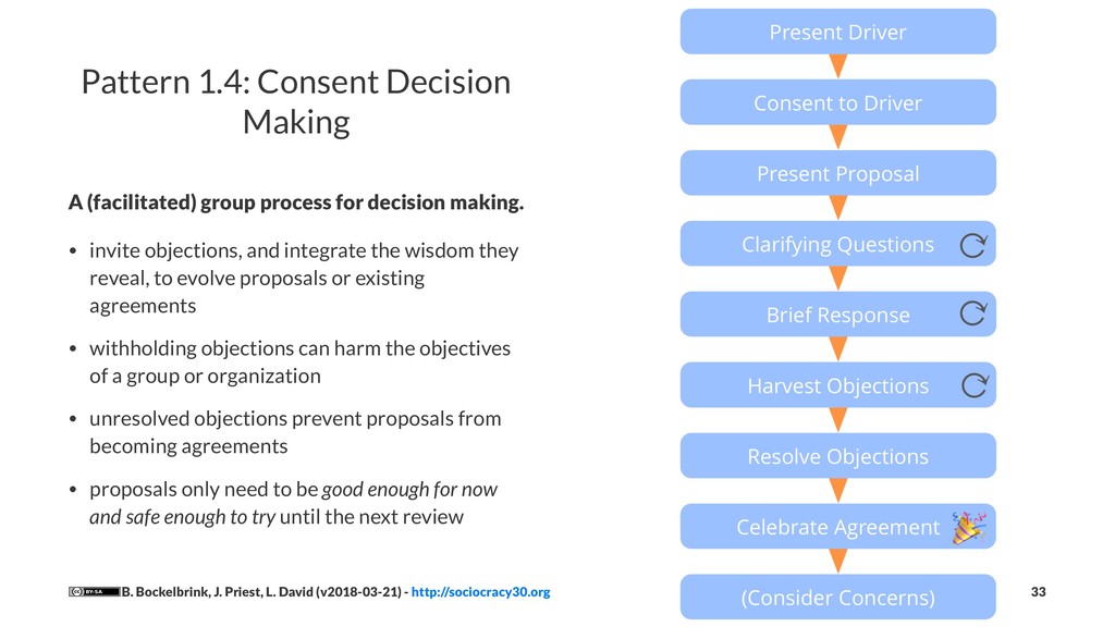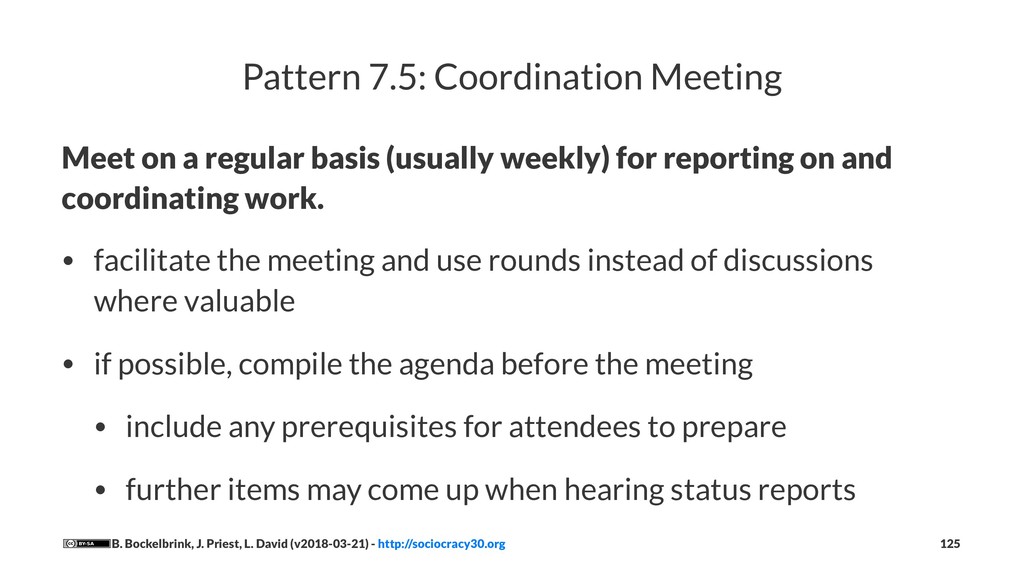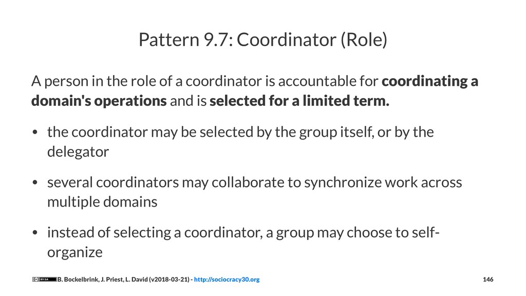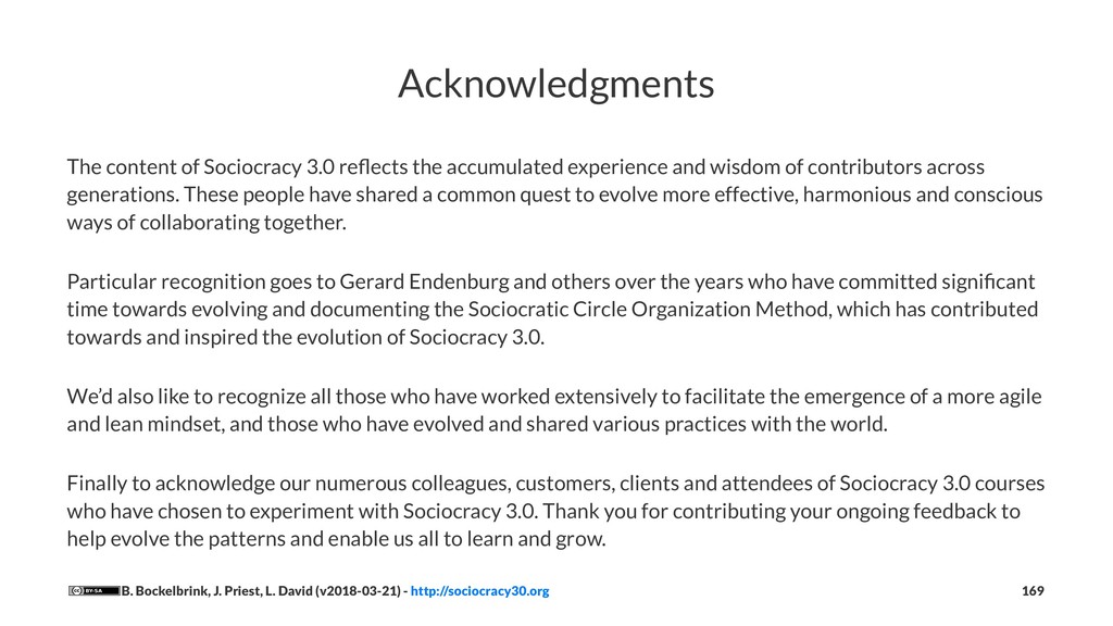 Sociocracy 3.0 (a.k.a. S3) - brings you an extensive collection of guidelines and practices (patterns) that have proven helpful for organizations for improving performance, alignment, fulfillment and wellbeing.